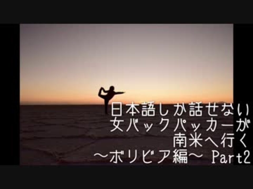 2016.1/27-2/10<br />南米ボリビアとペルーに行ってきました。<br />完全個人手配、<br />英語、スペイン語は全く話せません。<br /><br />記録の意味を込めて動画を投稿します。<br /><br />Part1:2016.1/27-1/29 <a href="https://www.nicovideo.jp/watch/sm28389986" class="watch">sm28389986</a> <br />Part2:2016.1/29-1/31 <a href="https://www.nicovideo.jp/watch/sm28405303" class="watch">sm28405303</a> <br />Part3:2016.1/31-2/1 <a href="https://www.nicovideo.jp/watch/sm28437141" class="watch">sm28437141</a><br /><a href="https://www.nicovideo.jp/mylist/50837301" target="_blank" rel="noopener">mylist/50837301</a><br />ウユニの街に到着後、即星空ツアーに参加。<br />30日は鏡張りとサンセットツアーに参加。<br />ホテルをジュリアからマリスに変更、<br />31日は夜中に出発し、星空とサンライズツアーに参加。<br />