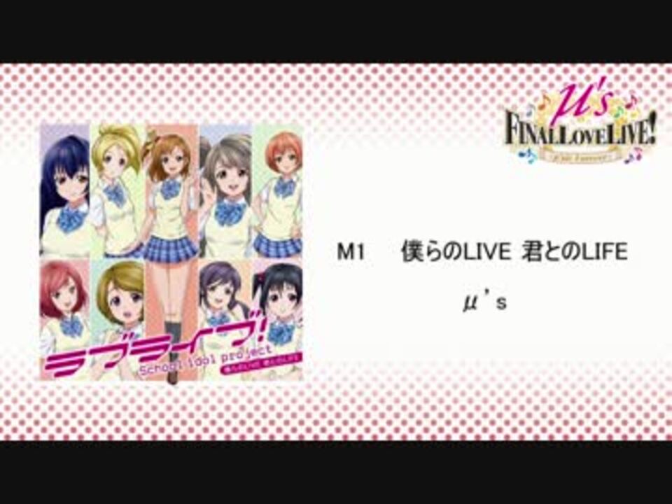 μ’s Final LoveLive!のセットリストをメドレーにしました。<br />セットリストの表記は公式HPのものを参照しています <a href="http://news.lovelive-anime.jp/app-def/S-102/news/?p=11635" target="_blank" rel="noopener nofollow">http://news.lovelive-anime.jp/app-def/S-102/news/?p=11635</a><br /><br />μ’s Final LoveLive! キャスト感想トークまとめを作りました! → <a href="https://www.nicovideo.jp/watch/sm28673106" class="watch">sm28673106</a><br /><br />μ'sic Forever♪♪♪♪♪♪♪♪♪<br /><br />※ご視聴有難うございます!画面が全体的に白いためコメントが見辛いと思いましたので<br /> コメントのデフォルトカラーを黒に変更致しました。(2016/4/3 16:00追記)