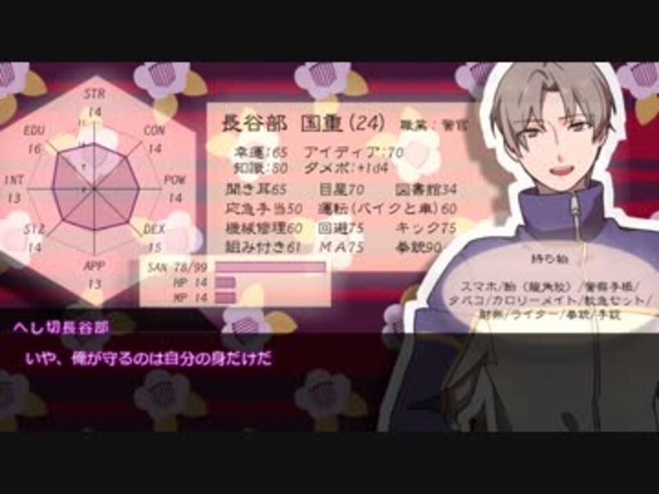 光忠「セッション動画化したいな」<br />堀川「お手伝いなら任せて!」<br />というわけで堀川の人にお願いして動画を作ってもらいました。<br />◆くまさん様作「かんおけのなかにいる」(<a href="http://touch.pixiv.net/novel/show.php?id=5260624)の実卓リプレイとなっております" target="_blank" rel="noopener nofollow">http://touch.pixiv.net/novel/show.php?id=5260624)の実卓リプレイとなっております</a>。シナリオを回すにあたり、一部改変しております<br />◆KP大倶利伽羅・寛大なKP/PL光忠・書き起こし担当、うp主、3人の中で1番やばいらしい/PL長谷部・最年少、一応まとも枠/堀川・動画作成担当、OPは曲から作り始めた変態だよ!<br />◆お借りしたものは動画内またはコンテンツツリーにて紹介しております。<br />◆何かありましたら→(<a href="https://twitter.com/kiku_TRPG)" target="_blank" rel="noopener nofollow">https://twitter.com/kiku_TRPG)</a><br />◆今回→次回(<a href="https://www.nicovideo.jp/watch/sm28632621" class="watch">sm28632621</a>)龍角散卓まとめ(<a href="https://www.nicovideo.jp/mylist/55530156" target="_blank" rel="noopener">mylist/55530156</a>)