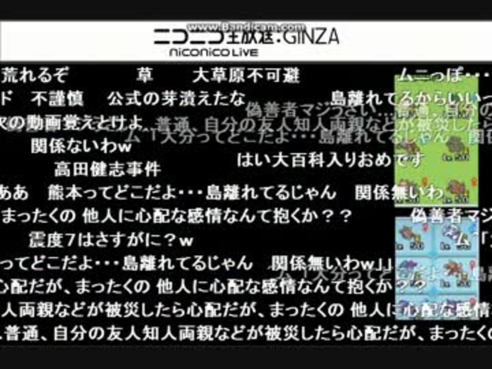 ^ム^「九州ってさぁ、違う島じゃんw ぶっちゃけ言えば。てことは別に(地震とか)全く無関係だよね。ホントに」<br /><br /><a href="https://live.nicovideo.jp/watch/lv259597955" target="_blank" rel="noopener">lv259597955</a><br /><br /><br />ムーニーズ:co1350319<br />マイリスト:<a href="https://www.nicovideo.jp/mylist/55506426" target="_blank" rel="noopener">mylist/55506426</a><br />ツイッター:<a href="https://twitter.com/MoonyManV2" target="_blank" rel="noopener nofollow">https://twitter.com/MoonyManV2</a>