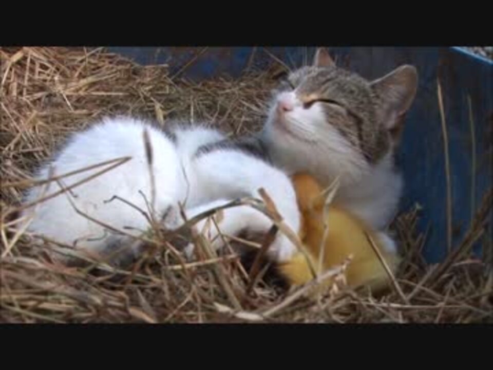 鴨のひなを子育てする猫。