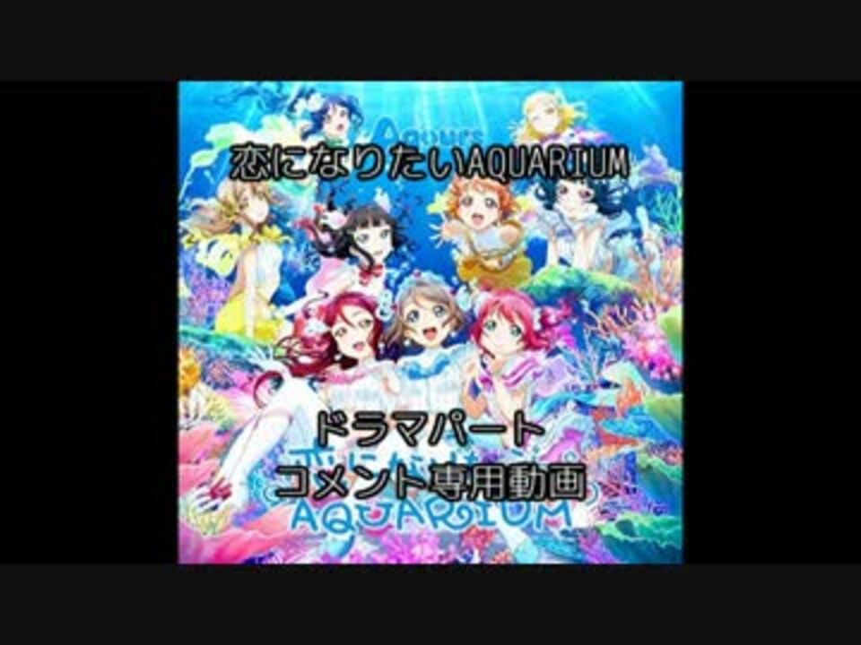 ●本動画はCD『恋になりたいAQUARIUM』ドラマパートのコメント専用動画です。<br />各自でCDを再生し、ツッコミや感想コメントを残し、みんなで共有して楽しもう、という趣旨の動画です。<br />音声は一切含まれておりません。<br />(いわゆる、「SZBH方式」と言われるタイプの動画です)<br /><br />コメントが少ないとただタイマーが進むだけの動画になってしまうので、みんなでコメントして盛り上げていって下さい!<br /><br />●『恋になりたいAQUARIUM』は、BD版が定価3000円(税別)、DVD版が定価2000円(税別)で好評発売中!<br /><br />(動画編集が初めてで、少し扱いづらい点があるかもしれません。ご容赦下さい。)<br /><br />ラブライブ!サンシャイン!! コメント専用ドラマパートマイリスト<a href="https://www.nicovideo.jp/mylist/55661870" target="_blank" rel="noopener">mylist/55661870</a>