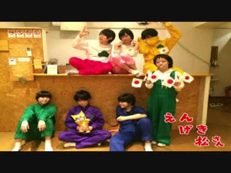 演劇経験者兼ダンス初心者が集まっただけの自己責任動画第2弾!!<br /><br />どうしてこうなった(とキャストは記述しており)<br /><br />【キャスト】<br />おそ松:いろり(@irony_amemiya)「何で徒歩には遅延証明書が出ないんですか」<br />カラ松:すとろがのふ「嵐を呼ぶ松とは私のことだ(NG最多)」<br />チョロ松:留「前髪…」<br />一松:きゅう「クソ松の前でにゃんにゃんk…(白目)」<br />十四松:鯖(@mogtop5)「振り付けだけは考えた!あとはアドリブで!!!」<br />トド松:あずき(@azuki37_anime)「笑い抑えるの辛いよ(遠い目)」<br />トト子:玉虫「忘れ物に気づいて、カチューシャ"は"取りに戻った」<br />ハタ坊:殊「旗 頭に立てる 検索←」<br /><br />全力バタンキュー振付/鯖 編集/すとろがのふ カメラ/あずき<br /><br />前回→<a href="https://www.nicovideo.jp/watch/sm28184281" class="watch">sm28184281</a>