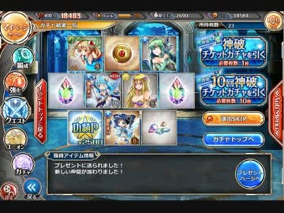 不具合多すぎなんですよねこのゲーム…<br />同時刻に遅延や消失、無限ループから抜け出せない等の複数の障害が発生、<br />課金ガチャでポイントだけ吸われた人も多かったようです。<br />細かい不具合は例を挙げればキリが無い状態でした。<br /><br />最終的にデータが膨れ上がりデータベース鯖が死亡、緊急メンテに突入しました。(ロールバック)<br /><br />魔法石Ver→ <a href="https://www.nicovideo.jp/watch/sm28895308" class="watch">sm28895308</a>