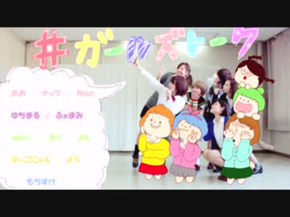 <font size=20>ガールズトーーク!</font><br /><br />歌ってみた×踊ってみた企画!<br /><br />メンバー!<br /><font color=#fa8072>♥歌ってみた(<a href="https://www.nicovideo.jp/mylist/56047637" target="_blank" rel="noopener">mylist/56047637</a>)</font><br />あお(干物系女子) @aoo01<br />awoi(おっさん系女子) @u_tawowo<br />もちすけ(白目系女子) @mcmc_dayo<br />ゆちまる(365日唐揚げ系女子) @yuchimaru_hq <br /><font color=#6495ed>♥踊ってみた(<a href="https://www.nicovideo.jp/mylist/56207381" target="_blank" rel="noopener">mylist/56207381</a>)</font><br />ナッツ(ギャル系女子) @Ax3Levelz0<br />Non(ペルソナ系女子) @_nnooonn_<br />ふぉまみ(姉御系女子) @fomami2525<br />ぷく(珍味系女子) @puqda<br />ゆっこにゃん(脳内ピンク系女子) @yukoneko21<br />よう(マスク系女子) @yoh_trpy<br /><font color=#9370db>♥MIX・編集(<a href="https://www.nicovideo.jp/mylist/40161268" target="_blank" rel="noopener">mylist/40161268</a>)</font><br />ラーメン系女子(?) よし @lala_yoshi<br /><br />Special Thanks!!<br />本家動画様:<a href="https://www.nicovideo.jp/watch/sm26174993" class="watch">sm26174993</a><br />振付本家様:<a href="https://www.nicovideo.jp/watch/sm26475051" class="watch">sm26475051</a><br />
