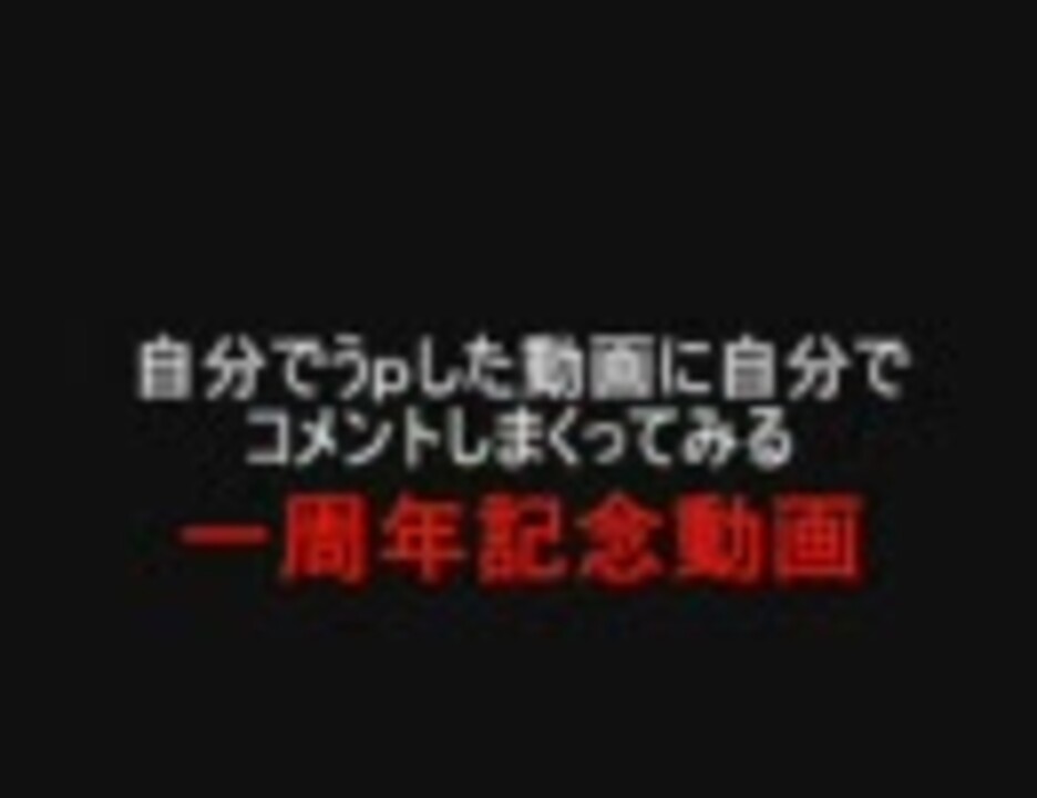 <a href="https://www.nicovideo.jp/watch/sm125732" class="watch">sm125732</a>「自分でうpした(ry」の一周年記念動画です。<br>■以前に投稿された0039ネギさん(<a href="https://www.nicovideo.jp/watch/sm1653870" class="watch">sm1653870</a>)や0016モアイさん(<a href="https://www.nicovideo.jp/watch/sm2388994" class="watch">sm2388994</a>)の動画より質が低いですが、<br>これでも前回の自分の動画の500倍は時間をかけました。<br>■情報の不足により紹介できなかった支援者もいます。また、情報は記憶に頼る部分が大きいため、間違いもあるかと思います。ごめんなさい。<br>◆「支援者」というのは「うp主の別人格」を指します。<br>◆ちなみに製作者は0120青です。<br>▲(4/17追記)誰も500倍に突っ込んでくれないので、ここで前作の動画晒してやります→<a href="https://www.nicovideo.jp/watch/sm952378" class="watch">sm952378</a><br>★(10/14追記)1000万コメおめでとう!予想と1日ズレはちょっと残念。<br><br>★(2015年10月追記)3000万コメおめでとう。益々のご発展を心よりお祈り申し上げます!<br>★(2022年追記)1億コメントおめでとうございます! 10億まで夢を追い続けて下さい!