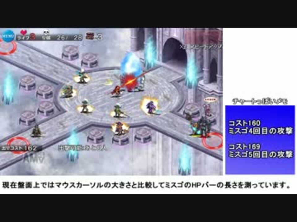 人の運ゲーを見るのは好きだが、自分が運ゲーをするのは嫌いだと言っただろう!<br /><br />ちゃんちゃんさんの銀以下☆2動画を参考にしました→<a href="https://www.nicovideo.jp/watch/sm29302924" class="watch">sm29302924</a><br /><br />湿/地/の/激/戦→<a href="https://www.nicovideo.jp/watch/sm30119822" class="watch">sm30119822</a><br />転/送/の/魔/法/陣→<a href="https://www.nicovideo.jp/watch/sm29585031" class="watch">sm29585031</a><br /><br /><br />【追記】<br />説明文に入りきらないほどの広告ありがとうございます!<br /><br />1:57辺りの『ニエル点火』右側に入れるの忘れてました<br />ミスリルゴーレムの暗殺補正は0.001らしいです。<br /><br />動画内で説明し切れなかったことの補足(ブロマガ)→<a href="https://ch.nicovideo.jp/article/ar466870" target="_blank" rel="noopener">ar466870</a><br /><br />今はイロハ+フェイで8回回避すればいけるらしいですよ→<a href="https://www.nicovideo.jp/watch/sm30913138" class="watch">sm30913138</a>(ちゃんちゃんさんの動画)