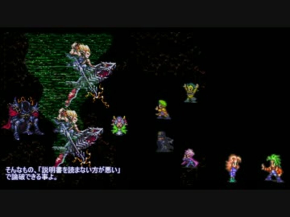 カタリナさん「色々仕込んでるPartです(意味深)」<br /><br />制限内容<br />1:戦闘中の行動を術42種・防御・退却にのみ限定する<br />2:HPとLPへのダメージ禁止<br />3:戦闘勝利回数100回でクリアする<br />4:???のみ???????許可(時が来たら発表)<br />5:特定条件下でのみ、まるごとバックアップや有利なバグを許可<br /><br />広告で宣伝してくださった方々、ツイートしてくださった方々、ありがとうございました。<br />おかげさまで、初のランキング入りを果たしました。これからも頑張ります。<br /><br />総合マイリスト→<a href="https://www.nicovideo.jp/mylist/56616600" target="_blank" rel="noopener">mylist/56616600</a> 本編マイリスト→<a href="https://www.nicovideo.jp/mylist/57354327" target="_blank" rel="noopener">mylist/57354327</a><br /><br />前回→<a href="https://www.nicovideo.jp/watch/sm29807767" class="watch">sm29807767</a> 次回→<a href="https://www.nicovideo.jp/watch/sm30484140" class="watch">sm30484140</a> おまけ→<a href="https://www.nicovideo.jp/watch/sm30252238" class="watch">sm30252238</a><br />