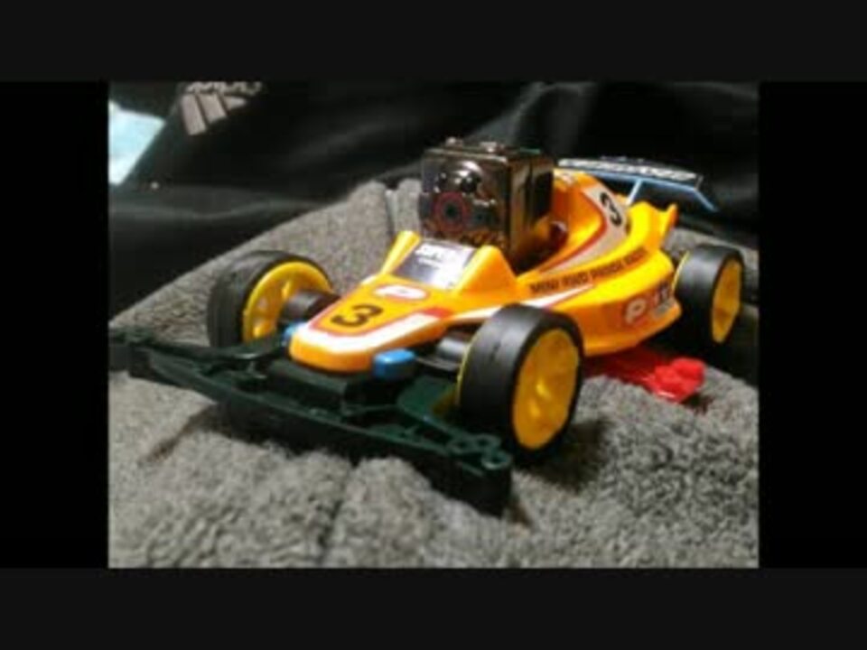 ミニ四駆に小型カメラを車載して撮影しました。<br />等速映像です。<br /><br />撮影車:S2・ノーマルモーター・3.5:1ギア・宝箱セッティング<br />先行車:S1・ノーマルモーター・4:1ギア・素組<br />カメラ:中華製安物小型カメラ<br /><br />先駆者の方の動画と比べものにならないほど低画質です。ご了承ください。<br />他のコースでも撮影させて頂けました。→<a href="https://www.nicovideo.jp/watch/sm30181323" class="watch">sm30181323</a>