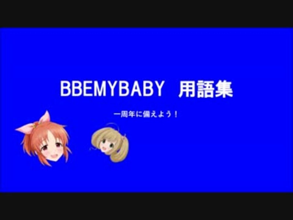 もはやBBEMYBABY関係ないけど見てー!→<a href="https://www.nicovideo.jp/watch/sm30737458" class="watch">sm30737458</a><br /><br />動画内で書き忘れてしまいました。「BEMYBABY劇場 アニメ化PV(<a href="https://www.nicovideo.jp/watch/sm29885360" class="watch">sm29885360</a>)」にて配布されている音楽を使わせていただきました。くにまり氏に心より感謝申し上げます。また、動画内で勝手に巻き込んでしまった方々、申し訳ありません。そして、ありがとうございます。これからの創作活動を応援させていただきます。これからの更なるBBEMYBABY発展を願って・・・。<br /><br />追記:えっ、ちょ、まじ?え、この動画使われたの~!?→ (<a href="https://www.nicovideo.jp/watch/sm30482730" class="watch">sm30482730</a>)(<a href="https://www.nicovideo.jp/watch/sm30610851" class="watch">sm30610851</a>)<br /><br />追記:だいぶ動画投稿を怠っている内に後継者が現れてしまった・・・→ <a href="https://www.nicovideo.jp/watch/sm32437761" class="watch">sm32437761</a>