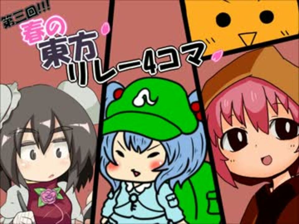 こんにちは、サードです。<br />今回3度目のリレー4コマになります。<br />楽しんでいただけましたら幸いです。<br />また、これまで私の我儘にお付き合いいただきありがとうございました。<br /><br />参考にさせていただいた動画様→(<a href="https://www.nicovideo.jp/watch/sm14532928" class="watch">sm14532928</a>)<br />第1回(<a href="https://www.nicovideo.jp/watch/sm25505050" class="watch">sm25505050</a>)<br />第2回(<a href="https://www.nicovideo.jp/watch/sm28197629" class="watch">sm28197629</a>)<br /><br />●参加者マイリスト●<br />・hkz( <a href="https://www.nicovideo.jp/mylist/34719847" target="_blank" rel="noopener">mylist/34719847</a> )<br />・雲塚(pixivID[1183704])<br />・サード( <a href="https://www.nicovideo.jp/mylist/21344823" target="_blank" rel="noopener">mylist/21344823</a> )<br />・ぶらっく( <a href="https://www.nicovideo.jp/mylist/8081573" target="_blank" rel="noopener">mylist/8081573</a> )<br />