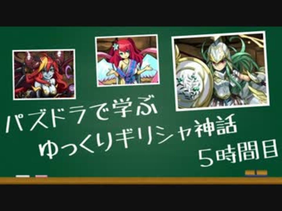 パズドラで学ぶシリーズ(予定)第1段!<br />5時間目は「神々の物語②」<br /><br />ランク1000までの折り返しはランク974らしい(白目)<br />このあたりから世界史要素が入ってきます。<br /><br />☆訂正(<a href="#" class="seekTime" data-seekTime="5:00" onclick="seekNicoPlayer('#5:00'); return false;">#5:00</a>頃)<br />×ゼウスの父・クロノスの切り取られた~<br />◎ゼウスの父・クロノスが切り取ったウラノスの~<br />お詫びして訂正申し上げます。<font color=#ffffff>お前らの名前紛らわしいんだよ!!!</font><br /><br />○iOS/Androidアプリ「パズル&ドラゴンズ」に登場する神々を中心に、神話の世界を紹介していきます。<br /><br />○諸注意や参考文献などは1時間目(<a href="https://www.nicovideo.jp/watch/sm30667097" class="watch">sm30667097</a>)にまとめてあります。<br /><br /><br /><a href="https://www.nicovideo.jp/watch/sm30794924" class="watch">sm30794924</a>←前丨<a href="https://www.nicovideo.jp/mylist/58326642" target="_blank" rel="noopener">mylist/58326642</a>丨次→勉強中(5/3)