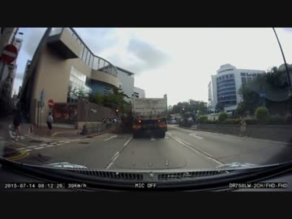 (2015-01-06)信号が緑から黄色に→BMWが急ブレーキ→密着していた後ろのダンプもつられてブレーキ→BMWが大惨事。その後警察の指示により、食物環境衞生署(食品・環境衛生局)の人に洗車してもらったそうです。<br />車間距離は大事ですね。<br />BGM: Michael McDonald - Signed, Sealed, Delivered I'm Yours