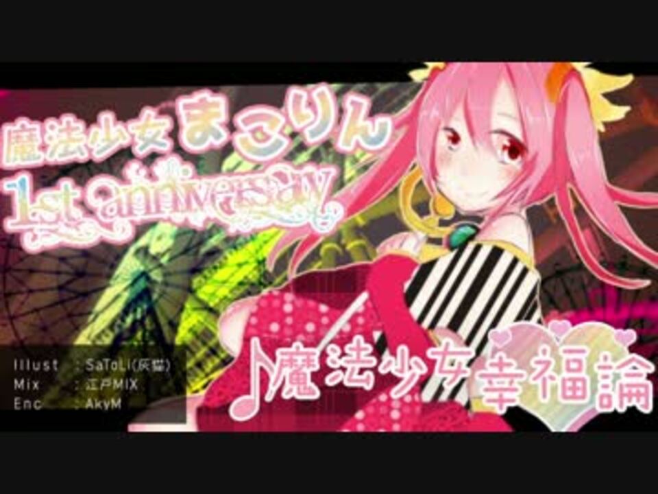 <b><font color="#ff80c0" size="4">魔法少女まこりんだよ~!</font><br /><br /><b><font color="#ff80c0" size="4">1周年ありがとおおおおおおおおおお!!!!!!</font><br /><b><font color="#ff80c0" size="4">魔法少女としての使命感にかられて??????</font></b><br /><br />今回は、トーマ様の『魔法少女幸福論』を歌わせていただきました。<br />動画と音源はお借りしました。<br /> <br /><b><font color="#ff1493" size="4">『そんな冗談で 愛してみたいんだ』</font></b><br /><br /><b><font color="#ffc0cb" size="4">魔法少女まこりんの幸福論聞いてください</font></b><br /><br />素敵な本家様【<a href="https://www.nicovideo.jp/watch/sm20503130" class="watch">sm20503130</a>】<br /><br />MIX 江戸MIX @edo_mix【<a href="https://www.nicovideo.jp/mylist/57661370" target="_blank" rel="noopener">mylist/57661370</a>】<br />ENC AkyM. @akymcr<br />Illustlation SaToLi(灰猫)@hainako_2525<br />Thum design あき*✭明 @akinoaki18 【<a href="https://www.nicovideo.jp/mylist/56581551" target="_blank" rel="noopener">mylist/56581551</a>】<br />Vocal macorin @macorin_0905 【<a href="https://www.nicovideo.jp/mylist/56924054" target="_blank" rel="noopener">mylist/56924054</a>】</b></b>