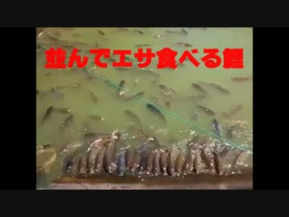 並んでエサ食べる鯉魚