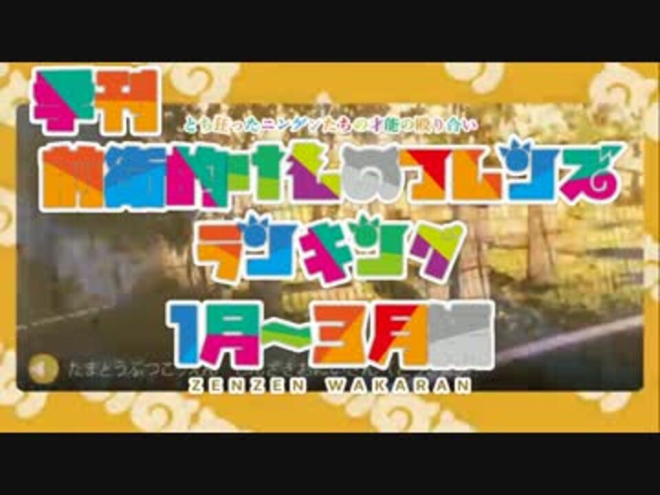 | 番号 | 総合順位 | ポイント | ジャンル順位 | カテゴリ | 再生順位 | 再生数 | コメント順位 | コメント数 | マイリスト順位 | マイリスト数 | いいね順位 | いいね数 |