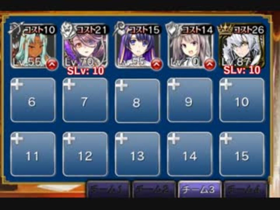 隠密弓いると削りが少し楽。スキルはヴェルティと皇帝のみ使用、<br />覚醒王子ポジションは固いユニットならOK. <a href="https://www.nicovideo.jp/mylist/52568980" target="_blank" rel="noopener">mylist/52568980</a><br />人数減っただけのケラ王子版:<a href="https://www.nicovideo.jp/watch/sm33643214" class="watch">sm33643214</a><br />Next: <a href="https://www.nicovideo.jp/watch/sm31439245" class="watch">sm31439245</a> Before: <a href="https://www.nicovideo.jp/watch/sm31438807" class="watch">sm31438807</a> 覚醒レダ級:<a href="https://www.nicovideo.jp/watch/sm31442315" class="watch">sm31442315</a><br /><br />>リタちゃんおったらダニエラの横にも置けて楽ってことか<br />ではなくて他の方のコメントにあるようにダニエラさんポジションへ<br />最初からリタを使おうぜ! という意図 わかりづらくてすまんッッッ<br />妖天君が城から移動後の配置なら横に並べてもいいですね<br /><br />ウサさん、ニコニ広告ありがとうございます!
