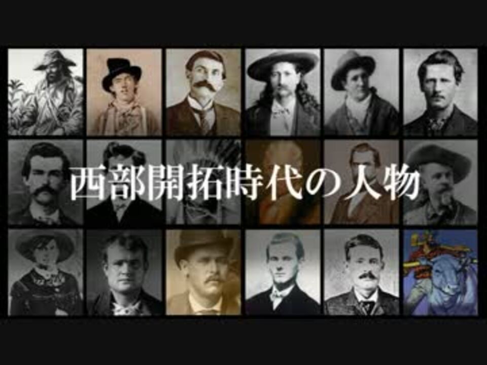 アメリカ西部開拓時代の人物を並べました。<br />基本的に広く浅くの人物紹介を目指してます。<br /><br />ジョニー・アップルシード/ビリー・ザ・キッド/パット・ギャレット/ワイルド・ビル・ヒコック/カラミティ・ジェーン/ワイアット・アープ/ドク・ホリデイ/リンゴ・キッド/ジェロニモ/ダニエル・ブーン/リーランド・スタンフォード/バッファロー・ビル/ベル・スター/ブッチ・キャシディ/サンダンス・キッド/ジェシー・ジェイムズ/ポール・バニヤン<br /><br /><br />マイリスト <a href="https://www.nicovideo.jp/mylist/58413091" target="_blank" rel="noopener">mylist/58413091</a><br /><br />海賊と呼ばれた人物:<a href="https://www.nicovideo.jp/watch/sm31330349" class="watch">sm31330349</a><br />歴代アメリカ大統領【前編】:<a href="https://www.nicovideo.jp/watch/sm30730967" class="watch">sm30730967</a><br />歴代イギリス(イングランド)君主 その1:<a href="https://www.nicovideo.jp/watch/sm31575940" class="watch">sm31575940</a><br />歴代フランス君主 その1:<a href="https://www.nicovideo.jp/watch/sm31019922" class="watch">sm31019922</a><br />