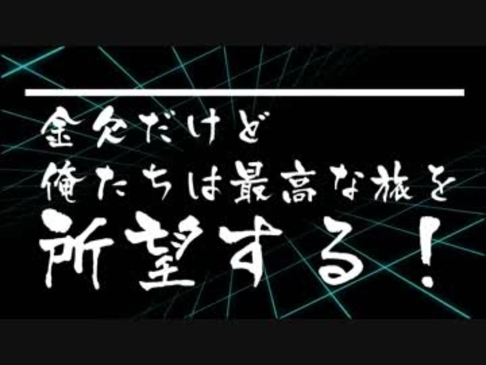 未だに、なぜ気があうのか分からない俺たち<br /><br />体重差も50kg、喫煙者/非喫煙者、聴く音楽ジャンルも被ったことがない<br /><br />そんな俺たちは常に最高の<font color="red"><b>【笑い】</b></font>と<font color="red"><b>【飯】</b></font>と<font color="red"><b>【温泉】</b></font>を所望している<br />そこだけが共通点だ<br /><br />あと、お金がないことも共通点だ..<br /><br /><br />お金がなくなって、最高の旅ができるはずだ!!<br />財布に1万ちょっとしか入れてない俺たちが送る<br /><font color="red"><b>【笑い】</b></font>とちょっぴり<font color="red"><b>【贅沢】</b></font>な旅行記は2017年10月末を目処に絶賛編集中!<br />お楽しみに!<br /><br />10/21 19:00~ →<a href="https://www.nicovideo.jp/watch/sm32130979" class="watch">sm32130979</a><br /><br />✡主演<br /><b>マナス</b><a href="https://www.nicovideo.jp/mylist/56611855" target="_blank" rel="noopener">mylist/56611855</a>(@suisuimanasu)<br /><b>ぶすじま</b>(まだ内緒らしい)<br />