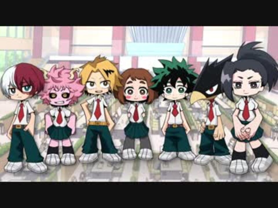 <br /><font color=#333333 size=2><b> ニコニコ動画に私達が来た!<br /><br /> みんなが小テストに戦ぐ(?)<br /> さらに向こうへ!</b></font><br /><br /><font color=#ff901f size=6><b><i> Plus Ultra !!</i></b></font><br /><br /><br /><font size=2> <b>-出席簿-</b><br /><font color=#696969 size=2> 緑谷出久 :きゅん<br /> 爆豪勝己 :ほかむん<br /> 麗日お茶子:あまた<br /> 轟焦凍 :Am<br /> 芦戸三奈 :kiria<br /> 上鳴電気 :杉並<br /> 常闇踏陰 :えぼ<br /> 八百万百 :kaho<br /> 相澤消太 :だい<br /> 死柄木弔 :しろ<br /></font><br /> <b>Scenario</b>:kaho<br /> <b>Illustration</b>:sana*<br /> <b>Mix</b>:kiria<br /> <b>Movie</b>:半島<br /></font>