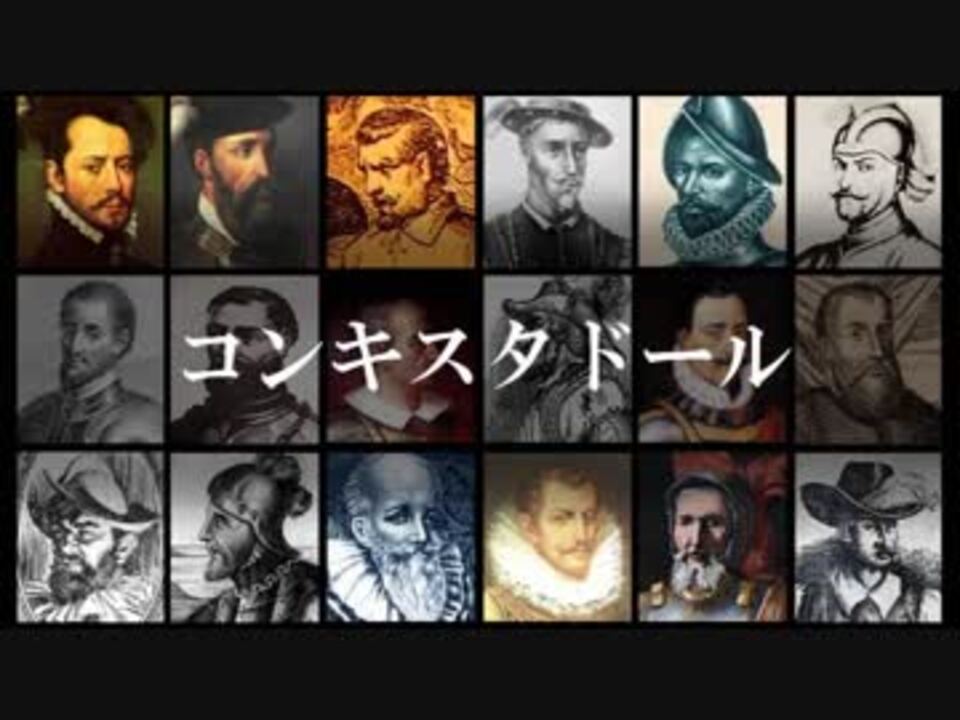 コンキスタドール(征服者)と呼ばれる人物を並べました。<br>基本的に広く浅くの人物紹介を目指してます。<br><br>エルナン・コルテス/フランシスコ・ピサロ/ゴンサロ・ピサロ/グリハルバ/オレリャーナ/ベラルカサル/エルナンド・デ・ソト/フランシスコ・エルナンデス/アルマグロ/フアン・ポンセ・デ・レオン/バルディビア/ベラスケス/パンフィロ・デ・ナルバエス/バスコ・ヌーニェス/ベルナル・ディアス・デル・カスティリョ/ペドロ・デ・アルバラード/ミゲル・ロペス・デ・レガスピ/フアン・デ・サルセード<br><br>マイリスト <a href="https://www.nicovideo.jp/mylist/58413091" target="_blank" rel="noopener">mylist/58413091</a><br><br>偉大なるファラオ:<a href="https://www.nicovideo.jp/watch/sm32186097" class="watch">sm32186097</a><br>死刑執行人:<a href="https://www.nicovideo.jp/watch/sm32107869" class="watch">sm32107869</a><br>世界の医師・医学者:<a href="https://www.nicovideo.jp/watch/sm31991508" class="watch">sm31991508</a><br>世界の冒険家・探検家:<a href="https://www.nicovideo.jp/watch/sm31947161" class="watch">sm31947161</a><br>百年戦争の人物:<a href="https://www.nicovideo.jp/watch/sm31908013" class="watch">sm31908013</a><br><br>◆追記◆<br>天津さん広告ありがとうございました。