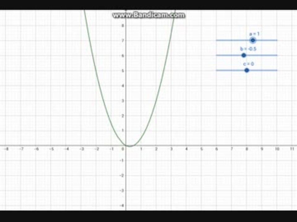 y=ax^2+bx+c<br />係数a,b,cが-5≦a≦5,-5≦b≦5,-5≦c≦5の範囲で暴れまわる。