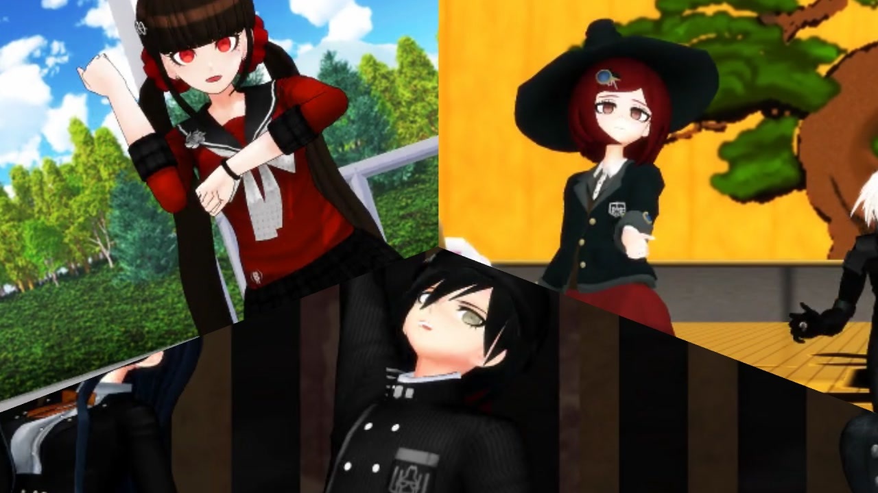 インテリタイプ不穏すぎ<br>※スーダンネタバレステージ使用、カメラ改造あり<br><br>スポーツ <a href="#" class="seekTime" data-seekTime="0:03" onclick="seekNicoPlayer('#0:03'); return false;">#0:03</a> <br>インテリ <a href="#" class="seekTime" data-seekTime="3:30" onclick="seekNicoPlayer('#3:30'); return false;">#3:30</a> <br>バラエティ <a href="#" class="seekTime" data-seekTime="7:28" onclick="seekNicoPlayer('#7:28'); return false;">#7:28</a> <br><br>クリスマス全く関係ない、むしろ文化祭イメージな3本です。地味に隠れモノクマや隠れ(てない)モノミや隠れ(る気ない)モノクマーズがいたりします。<br>お借りしたものは動画内とコンテンツツリーにて。<br><br>■追記<br>tome 様、チーズケーキ様、くろっく様、リブラ様、犬猫熊様、マリー・オーネット様、志塔喜摘様、広告ありがとうございます。<br><br>2曲目の音質が悪いようです。申し訳ありません。<br><br>ネタバレコメントが増えてきているので未クリアの方はお気を付けください。