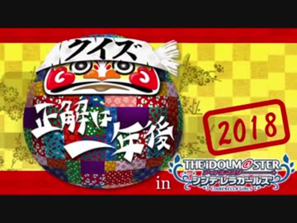 今年もやります!「クイズ☆正解は一年後inシンデレラガールズ」<br>2018年のシンデレラガールズを予想するクイズにコメントで回答して下さい。<br>年末投稿予定の解答編で答え合わせをしましょう。<br><br>年初の予想はどれくらい当たっているのか?<br>そもそも年末に答えを覚えているのか?<br>前回から一部リニューアルした全10問に挑んでみて下さい。<br><br>解答編 → <a href="https://www.nicovideo.jp/watch/sm34430740" class="watch">sm34430740</a><br><br>(参考)<br>2017年問題編 → <a href="https://www.nicovideo.jp/watch/sm30408044" class="watch">sm30408044</a><br>2017年解答編 → <a href="https://www.nicovideo.jp/watch/sm32496552" class="watch">sm32496552</a><br><br>アイマス関連マイリスト → <a href="https://www.nicovideo.jp/mylist/60734543" target="_blank" rel="noopener">mylist/60734543</a>