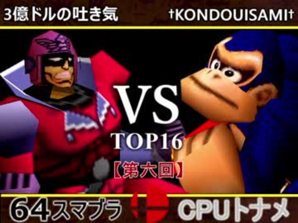 色物対決<br />※どちらが勝つかアンケ結果(Twitter調べ)<br />3億ドルの吐き気(FA) 67% VS †KONDOUISAMI†(DK) 33% <br /><br />【大会形式】ダブルイリミネーション方式トーナメント<br />・一度負けてもルーザーズ側を勝ち続ければ決勝に行ける<br /><br /><font color="#0000ff"><u>※64スマブラCPUトナメ実況のwikiができた模様</u>→</font> <a href="https://wiki3.jp/cpu_64" target="_blank" rel="noopener nofollow">https://wiki3.jp/cpu_64</a><br /><br /><b><font size="5"><font color="#ff0000">次→</font></font></b>【<a href="https://www.nicovideo.jp/watch/sm32823014" class="watch">sm32823014</a>】<br /><br />前【<a href="https://www.nicovideo.jp/watch/sm32813491" class="watch">sm32813491</a>】 一回戦第一試合【<a href="https://www.nicovideo.jp/watch/sm32538745" class="watch">sm32538745</a>】<br /><br />第六回マイリスト【<a href="https://www.nicovideo.jp/mylist/60846974" target="_blank" rel="noopener">mylist/60846974</a>】<br />64スマブラCPUトナメ実況part1まとめ【<a href="https://www.nicovideo.jp/mylist/60846861" target="_blank" rel="noopener">mylist/60846861</a>】<br />その他シリーズ【<a href="https://www.nicovideo.jp/mylist/12965027" target="_blank" rel="noopener">mylist/12965027</a>】<br /><br /><b><font color="#00bfff">Twitter</font></b>【@niconicopppppp】<br /><b><font color="#ff4500">チャンネル</font></b>【<a href="https://ch.nicovideo.jp/p-desu" target="_blank" rel="noopener">ch.nicovideo.jp/p-desu</a>】