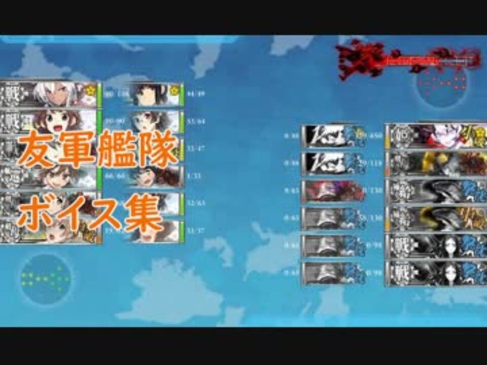 友軍艦隊ボイス集です。<br />2018年3月2日までに実装された友軍艦隊のボイスを収録しています。<br />抜けがあるかも。<br />【追記 3/25】<br />たくさんの広告ありがとうございます。<br /><br />・友軍艦隊ボイス(第十九駆逐隊①②,第四戦隊,西村艦隊①②,第十一戦隊①②,英国艦隊,露国艦隊,独露艦隊.第十戦隊,第三戦隊①②,二水戦①②,栗田艦隊,欧米艦隊①②③)<br /><br />目次付き-<a href="https://www.youtube.com/watch?v=rGXH9GBvyV8" target="_blank" rel="noopener nofollow">https://www.youtube.com/watch?v=rGXH9GBvyV8</a><br />次の動画-ホワイトデーボイス集2018(<a href="https://www.nicovideo.jp/watch/sm32944349" class="watch">sm32944349</a>)<br />前の動画-決戦ボイス集2018(<a href="https://www.nicovideo.jp/watch/sm32820815" class="watch">sm32820815</a>)<br />ボイス集-<a href="https://www.nicovideo.jp/mylist/59217711" target="_blank" rel="noopener">mylist/59217711</a><br /><br />blog-<a href="https://kitongame.com" target="_blank" rel="noopener nofollow">https://kitongame.com</a><br />Twitter-<a href="https://twitter.com/kitongame" target="_blank" rel="noopener nofollow">https://twitter.com/kitongame</a>