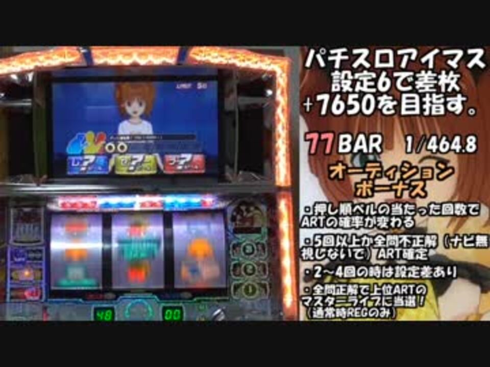 <br />パチスロ動画は初投稿です。ニコニコ始めたのが2009年でアイマスにハマったのもそのころです。一体何円使ったのやら…<br /><br />解析等につきましては調べたものなので、もしかしたら間違っているかもしれないです。すみません。あとやよいが好きなのでやよい率がこれから高くなるでしょう。<br /><br />ただ、個人的に理不尽だったのは動画外でART中にせっかく中段チェリー引いたのにBIG+ART1セットだけだったこと…もう少し恩恵があればよかったのに。<br /><br />なお、達成したい目標は<br /><br /><font color="#262626"><b>各種フリーズ(通常時:1/99864 ハイパーBIG中:1/4315 BIG中:1/270 マスターラッシュ ART準備中の1/3449)</b><br /><b>MEGARE!流す (残りART5セット以上確定。BIG引いて、Colorful Days選択できる状態の1/3で出現)</b><br /><b>My Song流す (ART10セット?をマスターライブ無しで)</b><br /><b>エクストラコミュを見る(ART20セット?)</b><br /><b>一撃7650枚(転落なしで)</b></font><br /><br />今回はテストを兼ねての投稿なのでPART0です。次からは最近私のガチャ動画でも行っているゆっくり実況で投稿したいと思います。差枚+7650達成したら設定1~5でも打っていこうかと。結構きつめの内容だが達成できるかな…?あと、今回はARTはノーカットでしたが、次回からは基本的に不要部分は全てカットします。<br /><br /><br />マイリスト <a href="https://www.nicovideo.jp/mylist/61221835" target="_blank" rel="noopener">mylist/61221835</a> 次 <a href="https://www.nicovideo.jp/watch/sm32868724" class="watch">sm32868724</a>