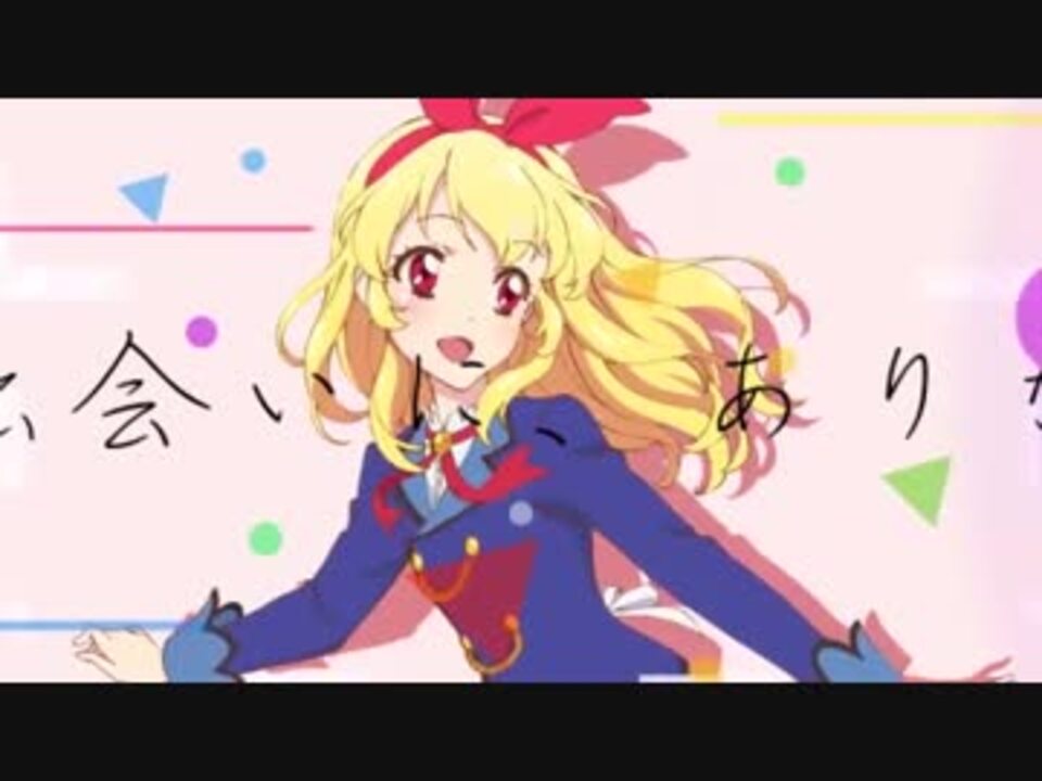 最新作「アイカツオンパレード!/アイドル活動!MAD」はこちら。<br><a href="https://www.nicovideo.jp/watch/sm36375969" class="watch">sm36375969</a><br><br><strong>ーー</strong> <strong>ー</strong> <br><br><strong>「この出会いにありがとう」 </strong><br><br>6年前、一人の女の子に出会いました。<br><br>その子は<br>太陽みたいに明るくて<br>のり弁当といちごパフェ(特盛)が大好きで<br>歌が上手くて<br>ダンスが上手くて<br>でもちょっと世間知らずで<br>だけど友達を大切にしている<br>リボンの似合う<br><br>いつも元気いっぱいのアイドルでした。<br><br>4年前、もう一人の女の子に出会いました。<br><br>その子は<br><br>大空のように心が広くて<br>ドレスとデザイナーを尊敬していて<br>歌が苦手で<br>ダンスが苦手で<br>けっこうおっちょこちょいで<br>でも友達を大切にしている<br>リボンの似合う<br><br>いつも一生懸命なアイドルでした。<br><br>3年前、さらにもう一人の女の子に出会いました。<br><br>その子は<br><br>夢に向かっていつもまっすぐで<br>誰よりも努力していて<br>いつも歌を練習して<br>いつもダンスを練習して<br>とっても友達想いな<br>リボンの似合う<br><br>いつだって諦めないアイドルでした。<br><br>私は、<br>いちごちゃんの笑顔に救われました。<br>あかりちゃんの明るさに助けられました。<br>ゆめちゃんの諦めない心が支えてくれました。<br><br>アイカツのアニメが、ゲームが、漫画が、劇場版が、アプリが、声が、歌が、声優が、スターアニスが、アイカツスターズが大好きです。<br><br>その5年間の想いを全部このMADに詰め込みました。<br><br><strong>「この出会いにありがとう――――」</strong><br><br>★シリーズ皆が出ているドラマCD↓(宣伝)<br><a href="http://amzn.asia/0092vCg" target="_blank" rel="noopener nofollow">http://amzn.asia/0092vCg</a><br>