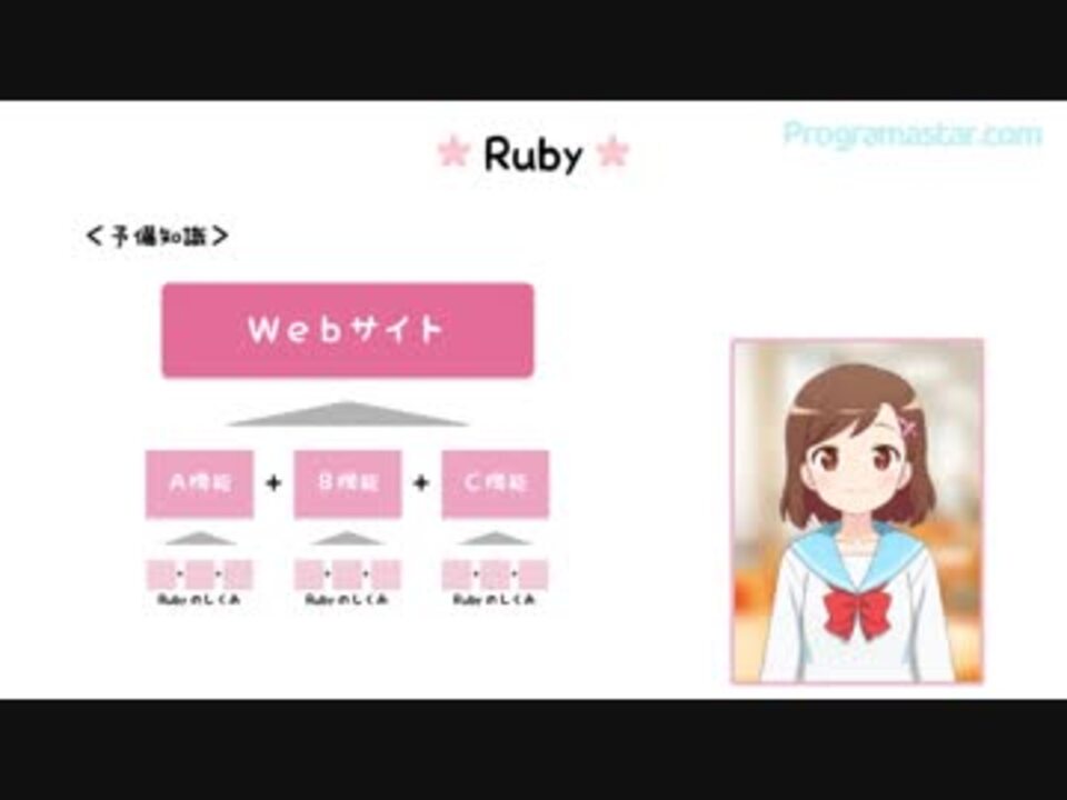 Rubyを勉強したい人おいでー! ٩( 'ω' )و <br /><br />チャンネル登録よろしくお願いします(ㆁᴗㆁ✿)<br /><a href="https://goo.gl/1q88sf" target="_blank" rel="noopener nofollow">https://goo.gl/1q88sf</a><br /><br />ツイッターもフォローお願いします٩(•౪• ٩)<br />【Twitter】⇒ @NanamiYurika_ch<br /><a href="https://twitter.com/NanamiYurika_ch" target="_blank" rel="noopener nofollow">https://twitter.com/NanamiYurika_ch</a><br /><br />本家Webサイトにユーザー登録お願いします!(๑˃̵ᴗ˂̵)و<br /><a href="https://programastar.com" target="_blank" rel="noopener nofollow">https://programastar.com</a><br /><br />=本家Webサイトより告知=<br />プログラミング学習サイトProgramastar.comでは、Webサイト版の全キャラクターの声優を、ユーザーの皆さんと一緒に決める【希望声優投票】を開催しています。Webサイト版のβ版以降では、アニメ声優さんに彼女たちのCVを担当していただきます。皆さんと一緒に最高のキャスティングを実現していきたいと思っています。<br />あなたの希望のキャスティング案を、サイト内のアンケートページよりご投票ください!<br />URL:<a href="https://programastar.com/characters" target="_blank" rel="noopener nofollow">https://programastar.com/characters</a>