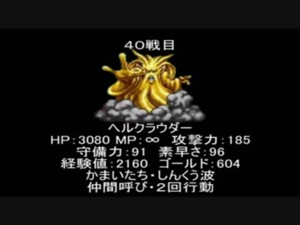 半年間眠ってた動画をアップロードしたり、<br />ふと思いついたことやったりいろいろしてたらこうなりました。<br />あと、最近Vチューバーなるものにハマったせいで<br />めちゃくちゃ影響受けてます。<br />今回はBGMはある共通点があるので<br />良ければ見つけてくださいね!<br /><br />こんなの作りました<br />(<a href="https://www.nicovideo.jp/watch/sm33062376" class="watch">sm33062376</a>)<br />(<a href="https://www.nicovideo.jp/watch/sm33062622" class="watch">sm33062622</a>)<br /><br />縛り内容<br />・最小戦闘勝利を目指す<br />・転職禁止<br /><br />やみのまじん、ヘルクラウダー、ボトク<br /><br />オススメマイリス<a href="https://www.nicovideo.jp/mylist/55933260" target="_blank" rel="noopener">mylist/55933260</a> <br />[<a href="https://www.nicovideo.jp/watch/sm32490015" class="watch">sm32490015</a>]←前回 マイリス <a href="https://www.nicovideo.jp/mylist/57599054" target="_blank" rel="noopener">mylist/57599054</a> 次回→ [<a href="https://www.nicovideo.jp/watch/sm33622126" class="watch">sm33622126</a>] <br /><br />過去の動画マイリス <a href="https://www.nicovideo.jp/mylist/58032812" target="_blank" rel="noopener">mylist/58032812</a><br /><br />コミュを作ってみました co3519361<br /><br />【前回宣伝、ありがとうございます!】<br />ぶーん 様、冒険男爵ドン 様、wata 様、<br />自称無職 様、スライムLv8様、オルゴ・デミーラ 様<br />アスナ 様、やまざき光悦 様、オッスオッス 様<br />heiseisumou 様、美咲 様、HMD 様