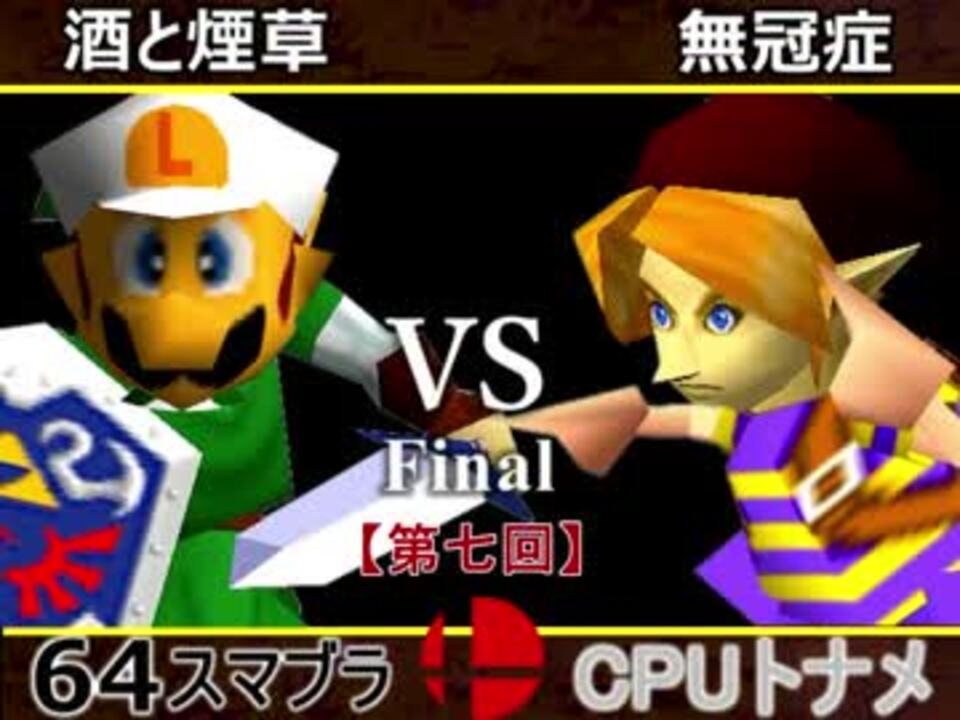 決勝にふさわしい実力派チームが残った!<br />※どちらが勝つかアンケ結果(Twitter調べ) <br />酒と煙草(玄酔楼×煙草マスターの子) 72% VS 無冠症(☆爆走戦士エルバン×紅きポイゾネサスくん) 28%<br /><br /><font color="#0000ff"><u>※64スマブラCPUトナメ実況のwikiができた模様</u>→</font> <a href="https://wiki3.jp/cpu_64" target="_blank" rel="noopener nofollow">https://wiki3.jp/cpu_64</a><br /><br /><b><font size="5"><font color="#ff0000">次→</font></font></b>【<a href="https://live.nicovideo.jp/watch/lv313372170" target="_blank" rel="noopener">lv313372170</a>】5/26(土)13:00~ ※幻想杯のルール&トナメ決め放送<br /><br />前【<a href="https://www.nicovideo.jp/watch/sm33247078" class="watch">sm33247078</a>】 一回戦第一試合【<a href="https://www.nicovideo.jp/watch/sm33183042" class="watch">sm33183042</a>】<br /><br />第七回マイリスト【<a href="https://www.nicovideo.jp/mylist/61916925" target="_blank" rel="noopener">mylist/61916925</a>】<br />64スマブラCPUトナメ実況part1まとめ【<a href="https://www.nicovideo.jp/mylist/60846861" target="_blank" rel="noopener">mylist/60846861</a>】<br />その他シリーズ【<a href="https://www.nicovideo.jp/mylist/12965027" target="_blank" rel="noopener">mylist/12965027</a>】<br /><br /><b><font color="#00bfff">Twitter</font></b>【@niconicopppppp】<br /><b><font color="#ff4500">チャンネル</font></b>【<a href="https://ch.nicovideo.jp/p-desu" target="_blank" rel="noopener">ch.nicovideo.jp/p-desu</a>】