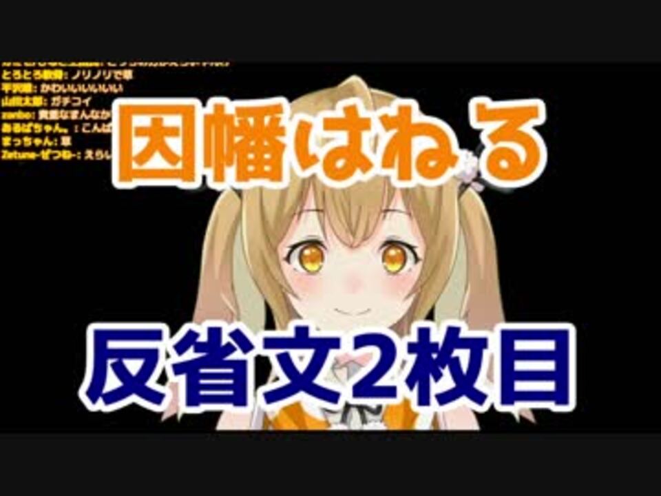 また性懲りもなく反省文案件なうさぎをさらし上げます。<br><br>一回目の反省文はこちら↓<br><font color="#0000ff">15分でわかるデビュー3日で反省文を読み上げるやべーうさぎ因幡はねる</font>(15:48~) <font color="#262626"><a href="https://www.nicovideo.jp/watch/sm33362551" class="watch">sm33362551</a></font> <br><br>チャンネル・フォローはこちら↓<br><b>因幡はねるTwitter<br><a href="https://twitter.com/Haneru_Inaba" target="_blank" rel="noopener nofollow">https://twitter.com/Haneru_Inaba</a><br>因幡はねるチャンネル<br><a href="https://www.youtube.com/channel/UC0Owc36U9lOyi9Gx9Ic-4qg" target="_blank" rel="noopener nofollow">https://www.youtube.com/channel/UC0Owc36U9lOyi9Gx9Ic-4qg</a> <br></b>元動画:Detroit: Become Human デトロイト初見プレイするウサギ #4【因幡はねる / あにまーれ】 <br><a href="https://www.youtube.com/watch?v=7b5lah6ReUQ" target="_blank" rel="noopener nofollow">https://www.youtube.com/watch?v=7b5lah6ReUQ</a><br><br><br /><span style="color: #ff0000; font-size: 24px;">up主が参加させていただいたおすすめ動画</span><br><span style="color: #001835; font-size: 24px;"><strong>因幡はねる誕生日合作2020 </strong></span><span style="font-size: 24px;"><a href="https://www.nicovideo.jp/watch/sm36451657" class="watch">sm36451657</a></span><br><br><span style="color: #ff0000; font-size: 16px;">最新動画(3/11投稿)</span><br><span style="color: #001835; font-size: 20px;"><strong>【驚愕】あにまーれの新人の本性暴いてみた</strong></span><a href="https://www.nicovideo.jp/watch/sm36481873" class="watch">sm36481873</a><br>