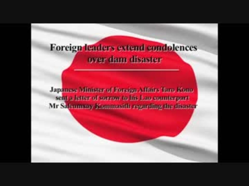 河野太郎外務大臣は、ラオスのサレムシェ・クマシス氏に災害に関して悲しみの手紙を送った。 閣僚は、日本政府がラオスの戦略的パートナーとして緊急用具を提供することに合意したと述べた。 河野氏は、亡くなられた方への冥福を祈るとともに、被災された皆様に哀悼の意を送ると述べた。<br /><br />聯合ニュースTV取材の現地映像 〜 <br />03:05〜 [アンカー]<br />ラオスのダムの事故が史上最悪の被害につながったのは、天災に人災が重なったためと明らかになっています。<br />手抜き工事疑惑に当局の安易な対応までまな板の上に上がって、責任攻防はさらに加熱されると思われます。<br />[レポーター]<br />ラオスのダム事故が発生した南部ああタープ州に事故が出前十日間なんと1千mmを超える豪雨が降っています。<br />事故前日の22日、日中のみ438mmの降雨量を記録しました。<br />ラオス政府とダム施工者のSK建設双方歴代級の水爆弾が事故の原因だというのには共感するが、被害を増大させた原因については立場の違いを見せています。<br />ラオスのエネルギー鉱山部長官は「補助ダムにひびが入っていただろう」としながら手抜き工事疑惑を提起しました。<br />ラオス首相も「補償問題と関連して、プロジェクトの開発者が100%負担しなければならない」と強調し、施工側の責任に重量を載せました。<br />いくら雨が多く降ろうが、強固なサドルダムの設計をしなければならないかということです。<br /><br />しかし、SK建設側は天災だと、ラオス当局と住民の安易な対処が大きな人命被害につながったものと見ています。<br />SK建設は、事故を吸う前の晩、補助ダムの損失の兆しに、ラオス当局に住民の避難を要請したことが知られました。<br />また、23日朝にも下の村村長に避難を要請し、午後に再びラオス当局に避難確認を要請したが、そのたびに住民がすべて避難したという確認を受けたのです。<br /><br />トンルン首相が「当局の責任も覗くことだろう」と述べたのもこれと関連しないかという観測が出てきています。<br /><br />人間の力ではどうしようもない天災のためか、または、最終的には、人災のためか、双方の責任攻防はさらに激化すると見えます。<br /><br />聯合ニュースTV部屋ジュヒです。