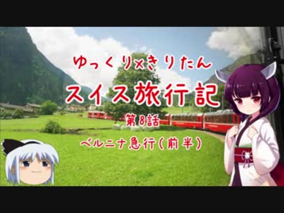 青い空、白い雲、鮮やかな緑、そして赤い列車。 <br><br>2018年6月に行ったミラノ→スイス旅行の動画になります。<br>初めての方は是非とも第1話を御覧ください。<strong>→第1話:</strong><a href="https://www.nicovideo.jp/watch/sm33479797" class="watch">sm33479797</a> <br><strong>画質1080p</strong>に対応していますので、再生ウィンドウ右下の設定よりお試し下さい。<br><br>→第7話:<a href="https://www.nicovideo.jp/watch/sm33761355" class="watch">sm33761355</a> →第9話:<a href="https://www.nicovideo.jp/watch/sm33820353" class="watch">sm33820353</a><br><br><span style="color: #000000; font-size: 14px;">1日目:オマーン→ミラノ 第1話~第3話<br>2日目:ミラノ 第4話~第6話<br>3日目:ベルニナ急行/クール 第7話~10話<br>4日目:リヒテンシュタイン/マイエンフェルト 第11話~第13話<br>5日目:クール/氷河急行 第14話~第15話<br>6日目:ツェルマット/ゴルナーグラート展望台 第16話~第19話<br>7日目:ツェルマット/スネガ展望台 第20話~第22話<br>8日目:ミラノより帰路、エンディング 第23話</span><br><br>DOVA SYNDROME - French Toast by Tanaka Tamago<br /><strong>1080P対応していますので、是非とも高画質でご視聴下さい。</strong><br><br>【旅行記マイリス】<span style="color: #006699;"><a href="https://www.nicovideo.jp/mylist/62607646" target="_blank" rel="noopener">mylist/62607646</a></span><br><span style="color: #006699;"><strong>→次 5/21 足元半分くらいまで作りました。</strong></span><br><br>・スイス旅行記 全23話 第1話 →<span style="color: #006699;"><a href="https://www.nicovideo.jp/watch/sm33479797" class="watch">sm33479797</a> / </span><a href="https://www.nicovideo.jp/series/14211" target="_blank" rel="noopener">series/14211</a><br>・ヨルダン旅行記 全8話 第1話 →<span style="color: #006699;"><a href="https://www.nicovideo.jp/watch/sm35033194" class="watch">sm35033194</a> / </span><a href="https://www.nicovideo.jp/series/14213" target="_blank" rel="noopener">series/14213</a><br>・ノルウェー旅行記 (作成中) 第1話 →<a href="https://www.nicovideo.jp/watch/sm36108947" class="watch">sm36108947</a> / <a href="https://www.nicovideo.jp/series/77252" target="_blank" rel="noopener">series/77252</a><br>・短編 函館の坂/全部巡る →<span style="color: #006699;"><a href="https://www.nicovideo.jp/watch/sm35597229" class="watch">sm35597229</a></span><br>・短編 -激レア- 金環日食の日の出 2019 in 中東 →<a href="https://www.nicovideo.jp/watch/sm36146303" class="watch">sm36146303</a><br>・短編 秋の富士山→ <a href="https://www.nicovideo.jp/watch/sm37882303" class="watch">sm37882303</a><br><br>【twitter】 <span style="color: #006699;"><a href="https://twitter.com/kunkunka1" target="_blank" rel="noopener nofollow">https://twitter.com/kunkunka1</a></span><br>予告動画投稿、 進行中の旅行写真など。
