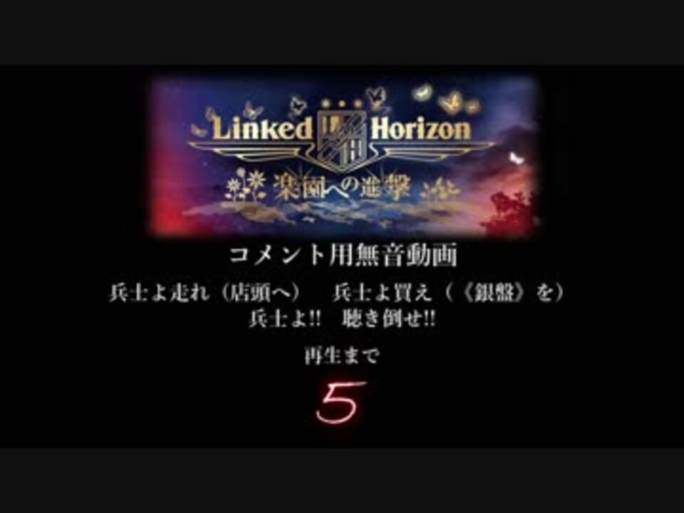 此の動画はLinked Horizon 3rd Single「<font color="#ffcc66">楽園への進撃</font>」を購入した人が語り合うための動画です。カウントダウンに合わせて《銀盤》を再生させて下さい。<br />(ギャップレス再生でない場合、ズレが生じる可能性が御座います……)<br /><br />1. <a href="#" class="seekTime" data-seekTime="0:05" onclick="seekNicoPlayer('#0:05'); return false;">#0:05</a> / 2. <a href="#" class="seekTime" data-seekTime="4:01" onclick="seekNicoPlayer('#4:01'); return false;">#4:01</a> / 3. <a href="#" class="seekTime" data-seekTime="9:15" onclick="seekNicoPlayer('#9:15'); return false;">#9:15</a> <font color="silver">/ 4. 13:15</font><br /><br />>>― 自作SH/LH無音動画 → <a href="https://www.nicovideo.jp/mylist/59044428" target="_blank" rel="noopener">mylist/59044428</a><br /><br /><font color="red" size="5">【注意】<br />動画内で漫画・アニメ「進撃の巨人」に関するネタバレコメントが予想されます。<br />耐性のない方は、前もって最新話まで読破する、真実を識る覚悟をキメる、右から左へ受け流す、etc... 何らかの対策を講じてから当動画をご視聴下さい。</font>