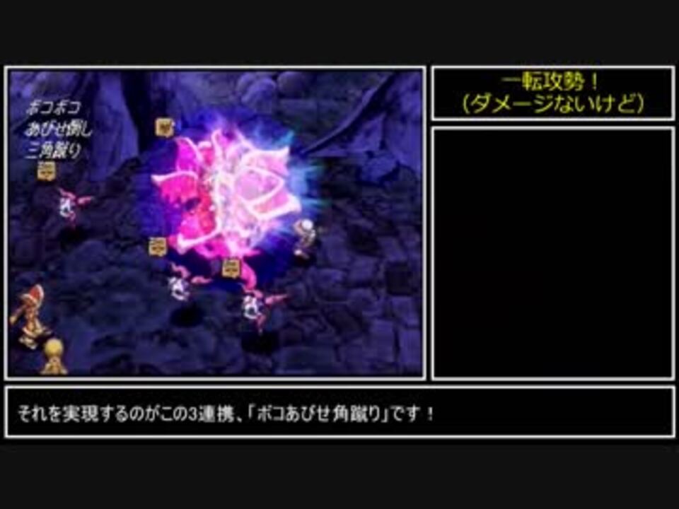 自分の好きなお姉さんキャラで、グールの塔の敵への与ダメ0でクリアしちゃおうとか言う無謀企画。<br>七大脅威5戦目。悪魔草を眠らせてLPを削る動画です。<br>緑と白の使い分けと連携の組み方がポイント。説明が相変わらずわかりにくくてスミマセン…<br><br>プレイ条件<br>・敵へ正のダメージを与える行為の禁止(0および緑ダメージ、LPダメージ、石化/即死は許可)<br>・グールの塔に存在する全ての敵を1回以上撃破<br>・全ての敵を倒すまで、塔から出る行為の禁止<br>・連携途中で敵HPを超える累積ダメージを与える事の禁止<br><br>・味方パーティのステータス/装備等、全て初期値から開始(LPについてはサイコロの出目まで減らす)<br>・技、ロール、敵の学習レベルの引継ぎ要素なし<br>・塔に入った後の64交換バグ、ポケステ禁止<br><br>更新は月1ペースを予定。ゆっくりで申し訳ありません。<br>本編(簡単過ぎて停止中)→<a href="https://www.nicovideo.jp/watch/sm19600514" class="watch">sm19600514</a> その04→<a href="https://www.nicovideo.jp/watch/sm33795674" class="watch">sm33795674</a> その06→<a href="https://www.nicovideo.jp/watch/sm34120171" class="watch">sm34120171</a><br><a href="https://www.nicovideo.jp/mylist/61870001" target="_blank" rel="noopener">mylist/61870001</a> 過去作品→<a href="https://www.nicovideo.jp/mylist/26368439" target="_blank" rel="noopener">mylist/26368439</a><br>