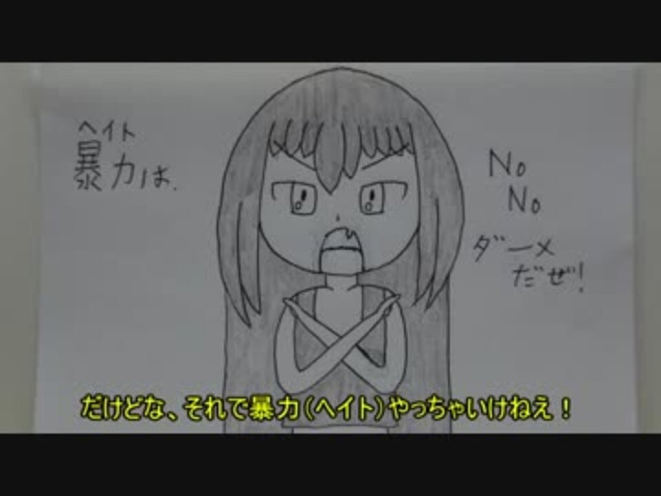 おはこんばんちは、きらめです!<br><br>今回は、ネット上でのヘイトスピーチの動きについて話していくぜ。<br><br><span style="color: #111111;">ヘイトスピーチっつーのは、人を傷つけちまうんだ。<br> もし、自分がヘイトスピーチを食らったらどう思うんだ?どんな気持ちになるんだ?<br>ネトウヨは、ヘイトスピーチを聞かされる相手の気持ちをよ~く考えてほしいぜ。 </span><br><br>どうせ聞くんなら、ヘイトスピーチじゃなくて、「ラブスピーチ」がいいなぁ、と俺は思うぜ。<br><br><br>Twitterアカウント(<a href="https://twitter.com/NogiveupDemo" target="_blank" rel="noopener nofollow">https://twitter.com/NogiveupDemo</a> ) <br>youtubeアカウント(<a href="https://www.youtube.com/channel/UCYaRpo4mx7kmzEoziKzJUew?view_as=subscriber" target="_blank" rel="noopener nofollow">https://www.youtube.com/channel/UCYaRpo4mx7kmzEoziKzJUew?view_as=subscriber</a> ) <br><br><br>ご意見やご質問、気になった事は遠慮しないで、動画のコメント欄やtwitterアカウントにどんどん言ってくれな!<br>皆さんからのコメント、待ってるぞーっ!<br><br>前回→ <a href="https://www.nicovideo.jp/watch/sm33867862" class="watch">sm33867862</a><br>次回→ <a href="https://www.nicovideo.jp/watch/sm34095761" class="watch">sm34095761</a><br><br>あと、声を変えてみたぜ。<br>どう思うかは俺のツイッター垢の固定ツイのぶら下がりリプにアンケートがあるから、答えてくれたら嬉しいぜ!<br><br>お借りしたBGM<br>ニコニ・コモンズ 様 (<a href="http://commons.nicovideo.jp/)" target="_blank" rel="noopener nofollow">http://commons.nicovideo.jp/)</a><br>曲:月夜の妖精<br><br>DOVA-SINDROME 様 (<a href="https://dova-s.jp/)" target="_blank" rel="noopener nofollow">https://dova-s.jp/)</a><br>曲:忍び寄る不穏