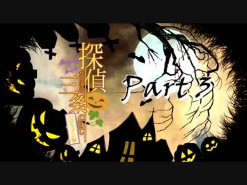 ハッピーハロウィン!三条が好きすぎてまた作ってしまった。 <br>これにて終幕。ラストに少し時間をとっているので、感想などあれば書いていただけるととっても喜びます。 <br>お菓子でも食べながらのんびりお楽しみください。<span style="font-size: 10px;"> たけのこの里とか。</span><br><br>***<br>シナリオはpixivよりゆるりとソルト様の「ハロウィンラン!」をお借りしています。 <br><a href="https://www.pixiv.net/novel/show.php?id=5912576" target="_blank" rel="noopener nofollow">https://www.pixiv.net/novel/show.php?id=5912576</a> <br>改変・ネタバレがあるのでご注意ください。<br>PL立ち絵はアッポロン様の素材を、その他立ち絵・演出の一部にマゼラン様の素材をお借りしています。<br>仮想卓ですがダイスは実際に振っております。<br>***<br>前→<a href="https://www.nicovideo.jp/watch/sm34100453" class="watch">sm34100453</a><br>続編→<a href="https://www.nicovideo.jp/watch/sm38880618" class="watch">sm38880618</a><br><a href="https://www.nicovideo.jp/mylist/62585267" target="_blank" rel="noopener">mylist/62585267</a><br>