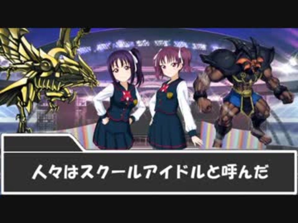 【注意】 この動画は原作とはキャラが多少異なる場合があります。キャラ崩壊が苦手な方はご注意ください。 またデュエルですが、演出やテンポのために一部のテキストの説明を省略したり、効果処理を正しくない順番で行っていたりします。この点もご了承ください。 <br>動画の演出として、発光エフェクトを使用しています。大丈夫だとは思いますが、眩しいのが苦手な方は一応ご注意ください。 <br><br>【追記】<br>編集ミスでデュエル中善子ちゃんの対戦相手が後半まで消滅してます。すみません…<br>あと善子ちゃんが魔嬢のリンク召喚時にダークネスメタルとか言ってますが、使い回しの素材の差し替えミスです。失礼しました。<br>ラストターンの強欲で金満な壺はメインフェイズ1開始時にしか発動出来ないのでこれもミスです。すみません<br>強貪か強金をその前のターンで発動したことにしておいてください。申し訳ないです<br><br>前回の動画を宣伝してくださった「ココチーノ」さん、「のしの」さん、「アスベル」さん、「未来じゅらー」さん、「 <font color="#252525">漆@のんたん推し</font>」さん「ルイデーン」さん、「エス」さん、「カワノ・ドテノ・シタ」さん、「もちそー」さん、「にゃるかみ」さん、「暁城茉樹」さん、ありがとうございました! <br><br><br><br>ツイッターのアカウント作ってみました→@shiny_duelist<br>前回⇒<a href="https://www.nicovideo.jp/watch/sm33933096" class="watch">sm33933096</a> 次⇒<a href="https://www.nicovideo.jp/watch/sm34367980" class="watch">sm34367980</a> マイリスト⇒<a href="https://www.nicovideo.jp/mylist/60328335" target="_blank" rel="noopener">mylist/60328335</a> <br><br>