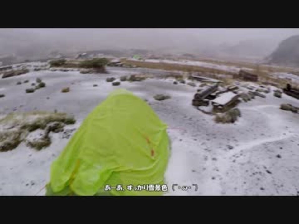 その2です。<br>すっかり本降りの雪になりました。<br>前予報の晴れで溶けてくれることを期待しましたが、予報は荒れ模様に変わっていました。<br>つまり、本日より剱岳は冬山シーズンに突入、かな?<br>いずれにせよ、軽装備の登山は危険なので、今回も撤退となりました。<br>やはりあのテントスペースは、私にとって禁断のスペースなのかもしれません。<br><br>その1・・・・<a href="https://www.nicovideo.jp/watch/sm34122127" class="watch">sm34122127</a><br><b>その2</b><br> <br>[マイリスト]登山・・・・・<a href="https://www.nicovideo.jp/mylist/55726920" target="_blank" rel="noopener">mylist/55726920</a>