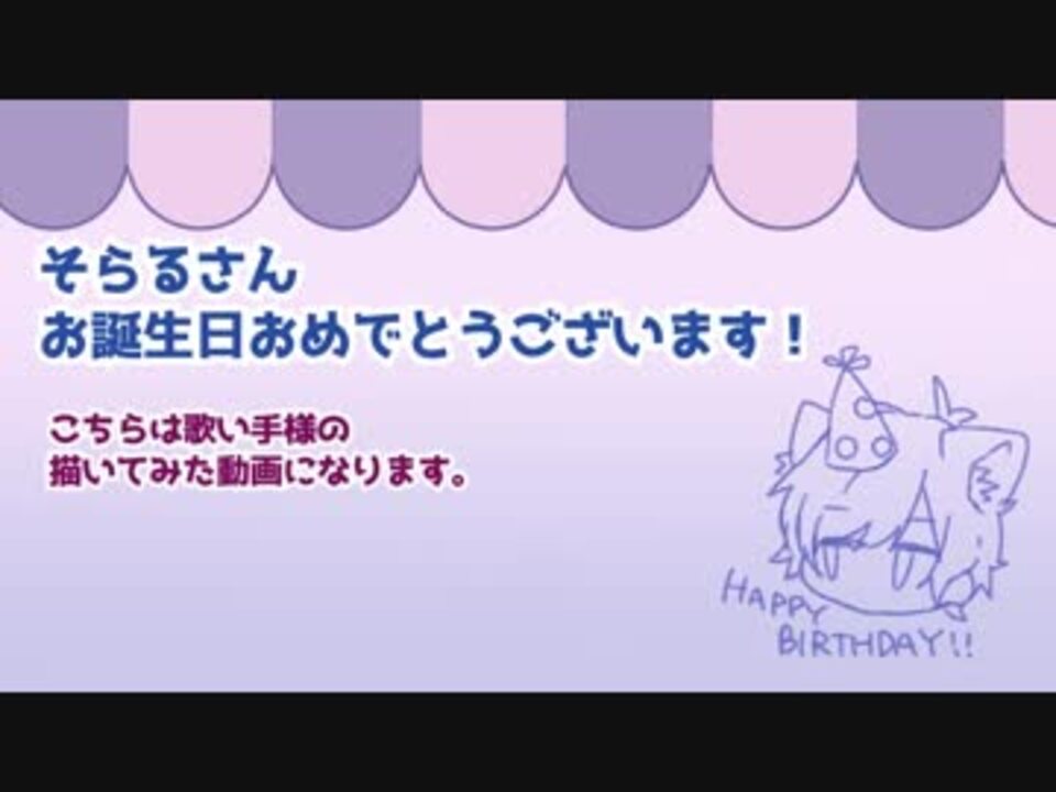 注意:こちらは歌い手様描いてみた動画です苦手な方はブラウザバック推奨です<br><br>そらるさんお誕生日おめでとうございます!<br>これからもそらるさんのご活躍を応援しております!<br>主催;3丁目のしろみ @3Shiromi<br><br>動画師;おとうゆ□ @10yusekiy<br><br>参加者様 (敬称略) 担当曲 Twitter<br>・ゆると 夜明けと蛍 yuruto_oO<br>・3丁目のしろみ WAVE<br>・Ruki グッドナイトフォール R64943867<br>・阿歾(あも) アイネクライネ lisalovem4bio4l<br>・五月 メリーバッドエンド sora_idk810<br>・朱音 ひとりがち akane_Mofmof<br>・ツナうさぎ ドリームレス・ドリームス tuna_dorayaki<br>・KREV アウトサイダー cllew_AtR<br>・彼方 人間だった kanata_AtR<br> <br><br>お借りした音源 <br>夜明けと蛍 【<a href="https://www.nicovideo.jp/watch/sm25566007" class="watch">sm25566007</a>】<br>WAVE 【<a href="https://www.nicovideo.jp/watch/sm19451843" class="watch">sm19451843</a>】<br>ドリームレス・ドリームス 【<a href="https://www.nicovideo.jp/watch/sm31182222" class="watch">sm31182222</a>】<br>アウトサイダー 【<a href="https://www.nicovideo.jp/watch/sm33050677" class="watch">sm33050677</a>】<br>人間だった 【<a href="https://www.nicovideo.jp/watch/sm33468360" class="watch">sm33468360</a>】<br>グッドナイトフォール 【<a href="https://www.nicovideo.jp/watch/sm32173978" class="watch">sm32173978</a>】<br>アイネクライネ 【<a href="https://www.nicovideo.jp/watch/sm29965896" class="watch">sm29965896</a>】<br>メリーバットエンド【<a href="https://www.nicovideo.jp/watch/sm32696868" class="watch">sm32696868</a>】<br>ひとりがち 【<a href="https://www.nicovideo.jp/watch/sm33369622" class="watch">sm33369622</a>】