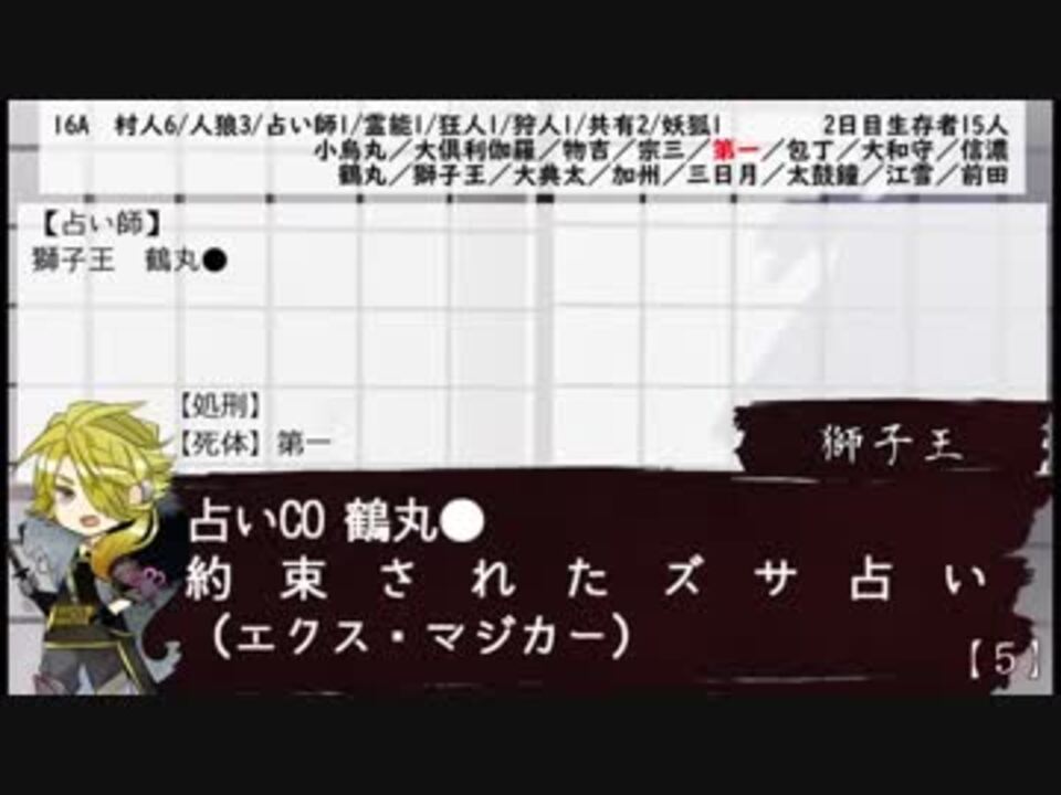 るる鯖で実際に行われた刀剣乱舞RP人狼のリプレイ動画です 。<br>次 <a href="https://www.nicovideo.jp/watch/sm34196861" class="watch">sm34196861</a><br>人狼動画マイリスト <a href="https://www.nicovideo.jp/mylist/63827134" target="_blank" rel="noopener">mylist/63827134</a><br>※11月25日 タイトルにちょっと追加<br><br>村立て予告の確認はこちらの掲示板でできます。<br>ttp://jbbs.shitaraba.net/netgame/14525/<br><br>BGM:hitoshi by Senses Circuit<br><a href="https://www.senses-circuit.com" target="_blank" rel="noopener nofollow">https://www.senses-circuit.com</a><br><br>■広告ありがとうございました!<br>グラジョさん/遺体さん/でり子さん/包丁の審神者さん/Riさん/そうへいさん/moniiさん/(´・ω・)さん/碧羅さん/kirschさん/シキさん/朱月桜華(しゅあん)さん/備後国の審神者さん/備前国審神者さん(同名略)<br><br />今までお借りしたBGM詳細 <a href="https://ch.nicovideo.jp/article/ar1793041" target="_blank" rel="noopener">ar1793041</a><br><br>村立て予告の確認はこちらの掲示板でできます。<br>ttp://jbbs.shitaraba.net/netgame/14525/<br><br>1村目 <a href="https://www.nicovideo.jp/watch/sm34154717" class="watch">sm34154717</a><br>2村目 <a href="https://www.nicovideo.jp/watch/sm34583834" class="watch">sm34583834</a><br>3村目 <a href="https://www.nicovideo.jp/watch/sm36031059" class="watch">sm36031059</a><br>4村目 <a href="https://www.nicovideo.jp/watch/sm37728354" class="watch">sm37728354</a><br>番外編1 <a href="https://www.nicovideo.jp/watch/sm35031050" class="watch">sm35031050</a><br>番外編2 <a href="https://www.nicovideo.jp/watch/sm36863775" class="watch">sm36863775</a>