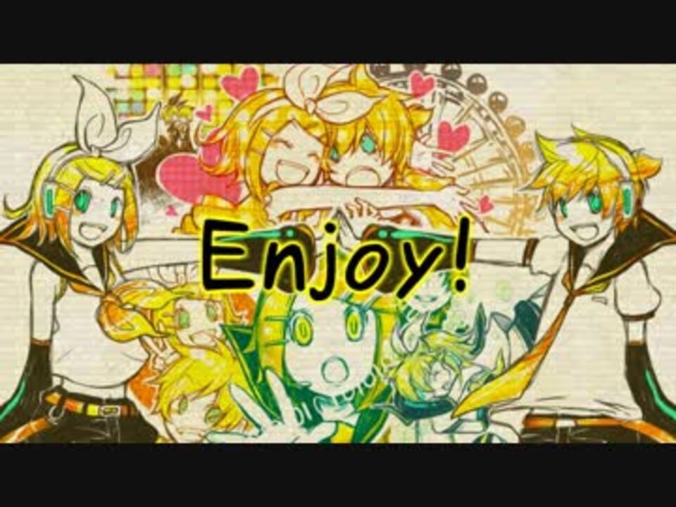 Enjoy! 嫌なコトなんて――みんなで騒いで、きれいさっぱり忘れちゃおうよ<br><br>作詞/とーる。(<a href="https://www.nicovideo.jp/mylist/45353054" target="_blank" rel="noopener">mylist/45353054</a>) 作曲・編曲/イーゼル<br>動画/イーゼル<br>使用ボーカロイド/鏡音リン Power・鏡音レン Power<br>使用イラスト/7:24様・cacho様・かどこあ様・じゅんじ様・えみりお様・mirai様・ももぱん様・セトラ様・ひま様・△○□×様<br><br><b>■制作コメント■</b><br>とーる。さんとのコラボ曲第2弾!<br>今まで作った曲の中で一番明るく、楽しくなれる楽曲になっていると思います(∩´∀`)∩<br><br><b>【次作品】→「置き去りぼっちと夕刻峠」<a href="https://www.nicovideo.jp/watch/sm34381853" class="watch">sm34381853</a><br>【VOCALOIDオリジナル曲】→<a href="https://www.nicovideo.jp/mylist/50364128" target="_blank" rel="noopener">mylist/50364128</a></b><br><br>Twitter→@Easel_Nico<br><br><b>ヤナギ ヤスネ様、P-Gengen様、かいる様、gogo_umasan様、ゆきのP様、仁平 和八様、神籬(Nigegoshi)様、さぼんぬ様、ショコラ様ニコニ広告ありがとうございます(*´ω`*)</b>