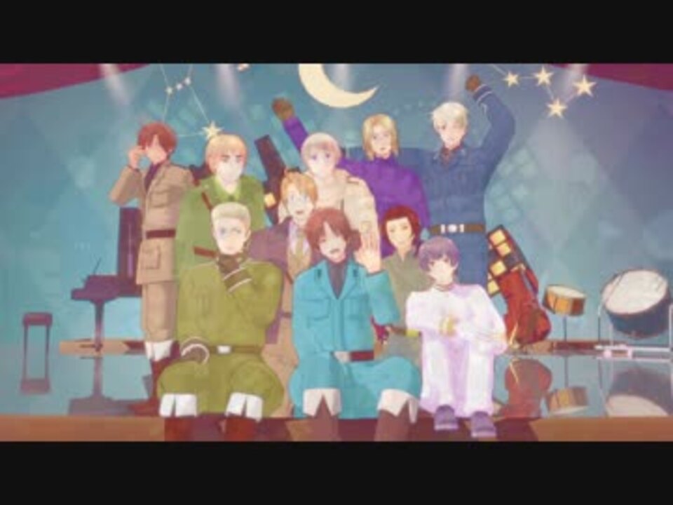 枢軸と連合(ロマーノとプロイセン君もいますよ)で雰囲気のある動画をいつか作るのが目標だったので、やっとこさ作れて満足です。<br>以前Twitterで短編を見てくださった方も、あれからだいぶ修正やら編集やらを加えたので楽しめると思います。<br>間奏のとこの写真は、この動画の撮影が終わった後にプロイセン君がステージ上で撮った写真(という設定)。<br>上記の写真(静止画)や最後の集合写真のポーズはヘタミュのキャストさん達が撮影した写真を参考にさせていただきました。<br>※誤字がありました。1:57は「EDIT」×→「CRESIT」○です<br><br>めっきー様、夜月様、アラビアータ様、ニャン太ろ様、波平様、※※様、もいも様、alvin様、トマト餡様、あやせ様、あさとら様、諏訪屋様、空瀬真鈴様、ツチノコウサギ様、りやん様、OMAKE様、ぷちあん様、陸月様、広告ありがとうございました!<br>