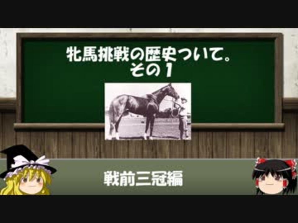 前作<a href="https://www.nicovideo.jp/watch/sm34504158" class="watch">sm34504158</a> 次作<a href="https://www.nicovideo.jp/watch/sm34589935" class="watch">sm34589935</a> <span style="color: #000000; font-size: 14px;">牝馬シリーズマイリス<a href="https://www.nicovideo.jp/mylist/65869255" target="_blank" rel="noopener">mylist/65869255</a> 競馬解説マイリス</span><span style="color: #006699; font-size: 14px;"><a href="https://www.nicovideo.jp/mylist/64207040" target="_blank" rel="noopener">mylist/64207040</a></span><br><br>つべ <a href="https://youtu.be/qBVCZkLlzMA" target="_blank" rel="noopener nofollow">https://youtu.be/qBVCZkLlzMA</a> <br><br>競馬の牝馬挑戦の歴史について解説してみました。<br>初の牝馬ダービー馬から、牡馬混合クラシック競走を制した牝馬達を年代を追いながらの紹介。<br><br><br>戦前~戦後ちょいですか。ヒサトモとクリフジが中心なのは仕方ないですよねw<br>あんまり長くしたくなかったので、今まで以上に手抜k・・・簡単な作りとなってます (;^ω^) <br><br>次回は牝馬初の天皇賞馬から、あの有馬記念馬辺りまででしょうか・・・。<br>今回はクラシック中心にしたかったので、クレオパトラトマスは次回に登場予定です。<br><br>個人のにわか知識がベースなので、間違いがあっても許して下さい。<br>何でもするとは言いません。<br><br>登場馬:ヒサトモ、クリフジ、ブラウニー、トキツカゼ、ヒデヒカリ<br><br>BGM:甘茶の音楽工房様<br>画像提供元: TURF☆DUST 様 うまぽっと様<br>参考HP:優駿達の蹄跡様 Wikipedia