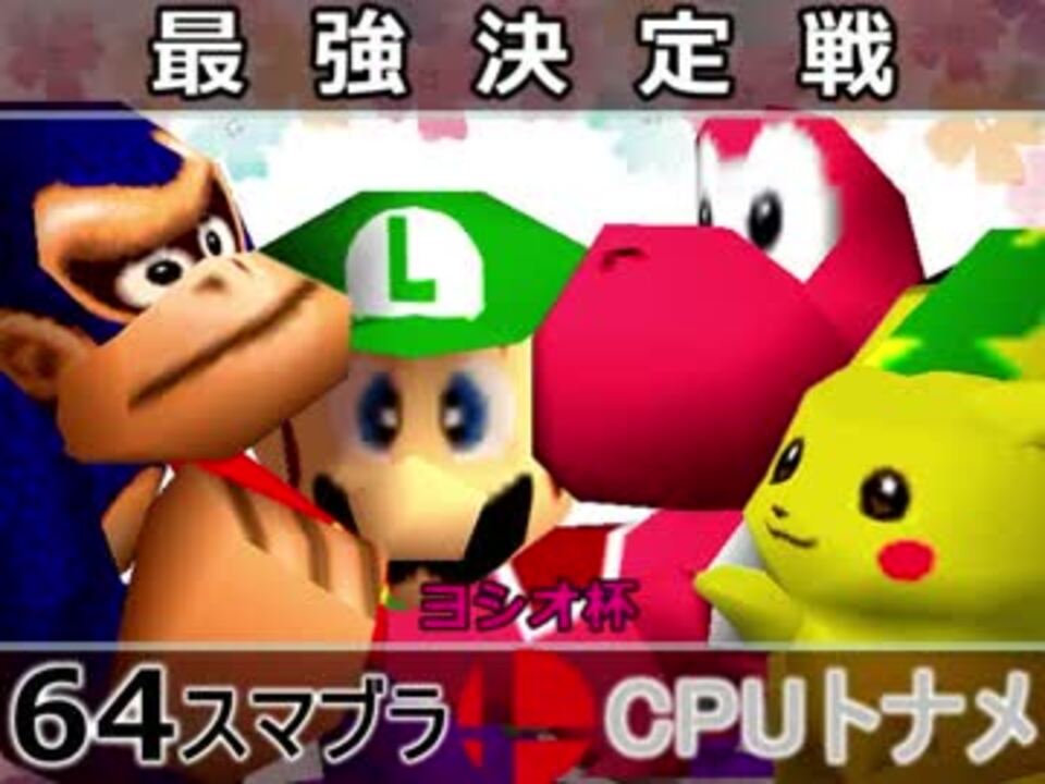 ついに【最弱の中の最強】が決まる!!!!<br>誰が【勝つか】アンケ結果(Twitter調べ) <br>◎ANAKINSUKAIWOOKAA☆彡 (LU) 27% 屈強なる妖精 (DK) 9% 暴力委員長(PI) 40% ナウいコテツ(YO) 24%<br><br><span style="color: #0000ff;"><u>※スマブラCPUトナメ実況のwikiができた模様</u></span><span style="color: #0000ff;">→</span> <a href="https://wiki3.jp/cpu_64" target="_blank" rel="noopener nofollow">https://wiki3.jp/cpu_64</a><br><br><span style="color: #ff0000; font-size: 24px;"><strong>次→</strong></span>【<a href="https://www.nicovideo.jp/watch/sm34615527" class="watch">sm34615527</a>(一触即死ダブルス)】<br><br>前【<a href="https://www.nicovideo.jp/watch/sm34542696" class="watch">sm34542696</a>】 一回戦第一試合【<a href="https://www.nicovideo.jp/watch/sm34505573" class="watch">sm34505573</a>】<br>ヨシオ杯マイリスト【 <a href="https://www.nicovideo.jp/mylist/64370882" target="_blank" rel="noopener">mylist/64370882</a>】 <br>スマブラCPUトナメ実況part1まとめ【<a href="https://www.nicovideo.jp/mylist/60846861" target="_blank" rel="noopener">mylist/60846861</a>】<br>その他シリーズ【<a href="https://www.nicovideo.jp/mylist/12965027" target="_blank" rel="noopener">mylist/12965027</a>】<br><br><span style="color: #00bfff;"><strong>Twitter</strong></span>【<a href="https://twitter.com/niconicopppppp" target="_blank" rel="noopener nofollow">https://twitter.com/niconicopppppp</a> 】<br><span style="color: #ff4500;"><strong>チャンネル</strong></span>【<a href="https://ch.nicovideo.jp/p-desu" target="_blank" rel="noopener">ch.nicovideo.jp/p-desu</a>】